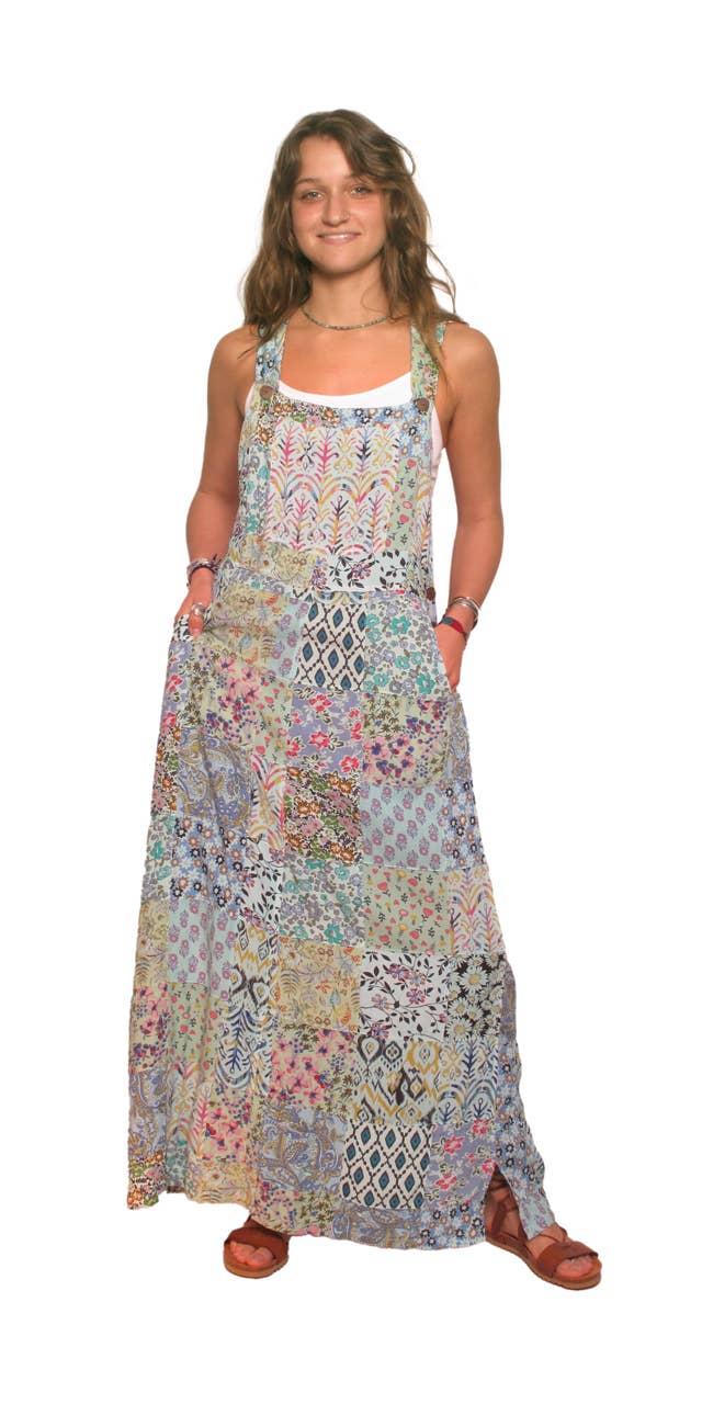 2308 Vintage Blue Sky Patchwork Dress with pockets, adjustable straps, and some real mojo.