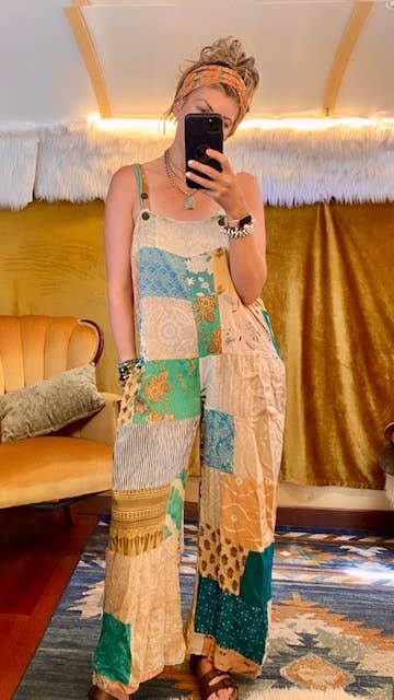 Introducing our 2380 Patchwork Overalls Rayon. NOW AVAILABLE in BLUE & SAND. Since 1994, our bohemian fashion resonates with free spirits. These overalls are more than just apparel, they're an expression of individuality. Imbued with our distinct flair, they are responsibly produced and moderately priced. Enjoy this vibrant piece in your wardrobe that truly represents Blue Sky.