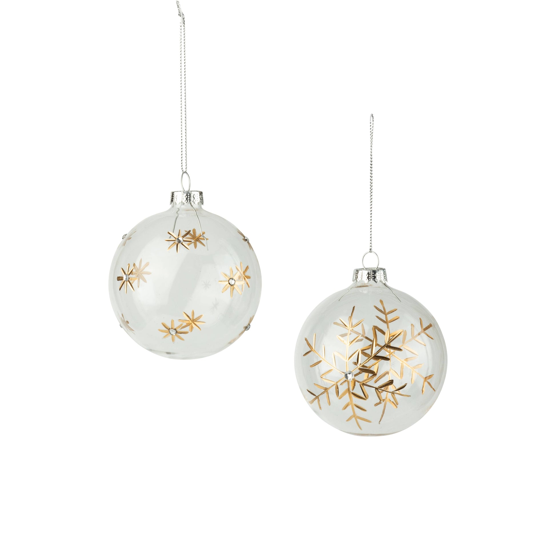 2 Asst'd glass clear ornament,clear ball with etched gold star and branch,80mm/3in. Please note that due to the nature of the materials,slight color variations may occur between individual items and compared to images. These differences are minimal and do not affect the overall appearance.