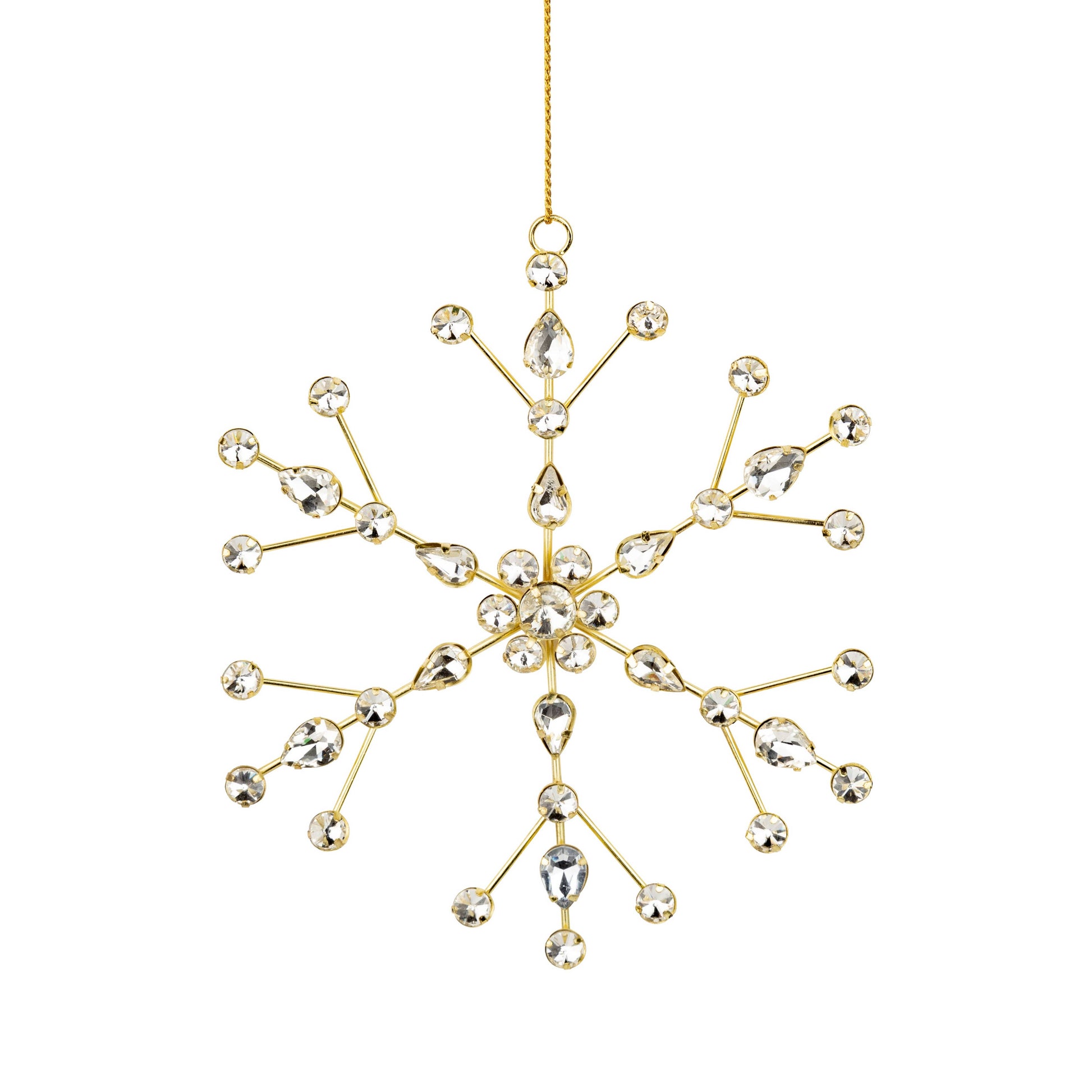 Clear glass jewel on gold metal frame snowflake ornament, 6.25 in. Please note that due to the nature of the materials,slight color variations may occur between individual items and compared to images. These differences are minimal and do not affect the overall appearance.