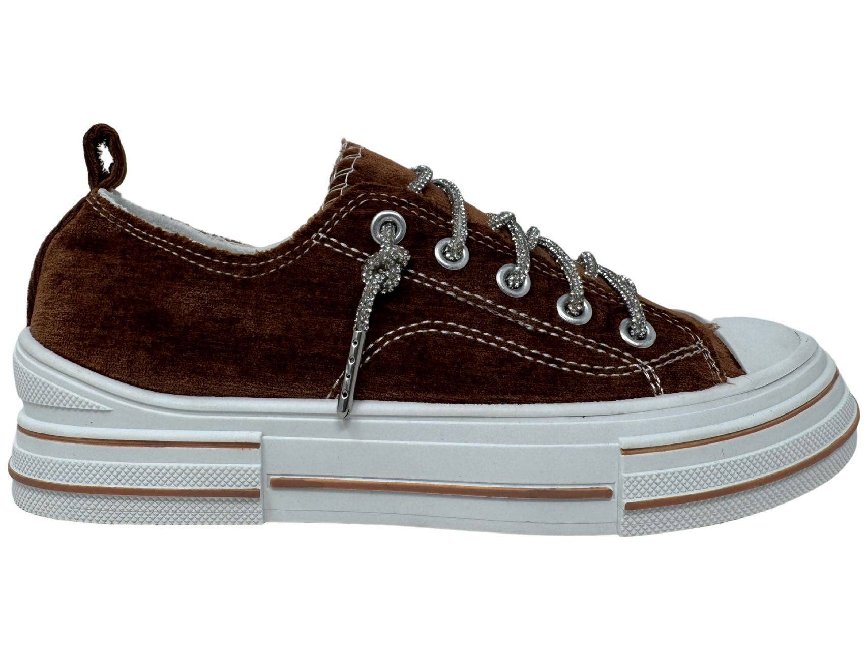Aman Velvet Very G's Tik Tok famous throw back low profile slip on sneaker with no tie Rhinestone sparkle laces and marshmallow soft footbed