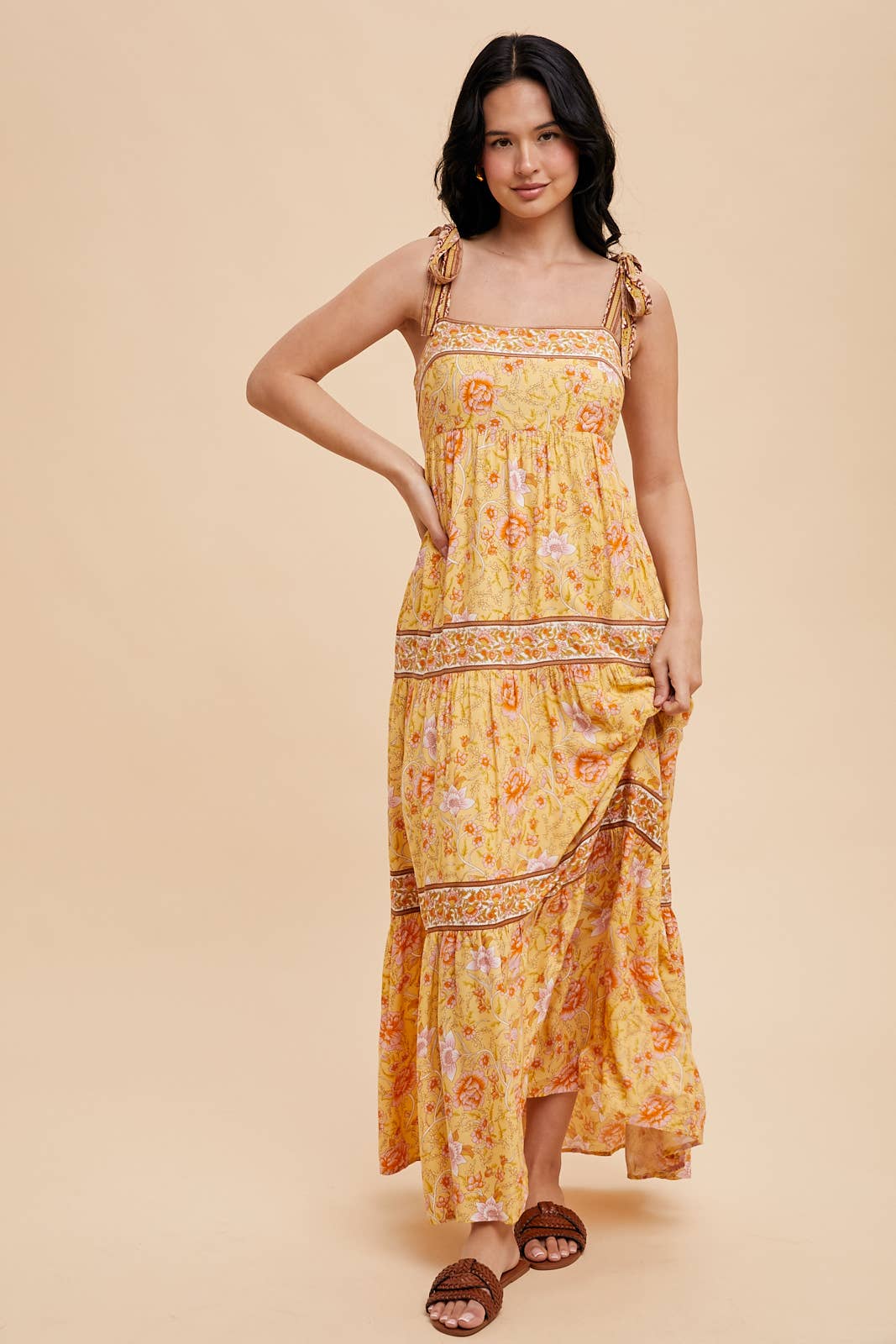 BORDER PRINT MAXI DRESS FEATURES: