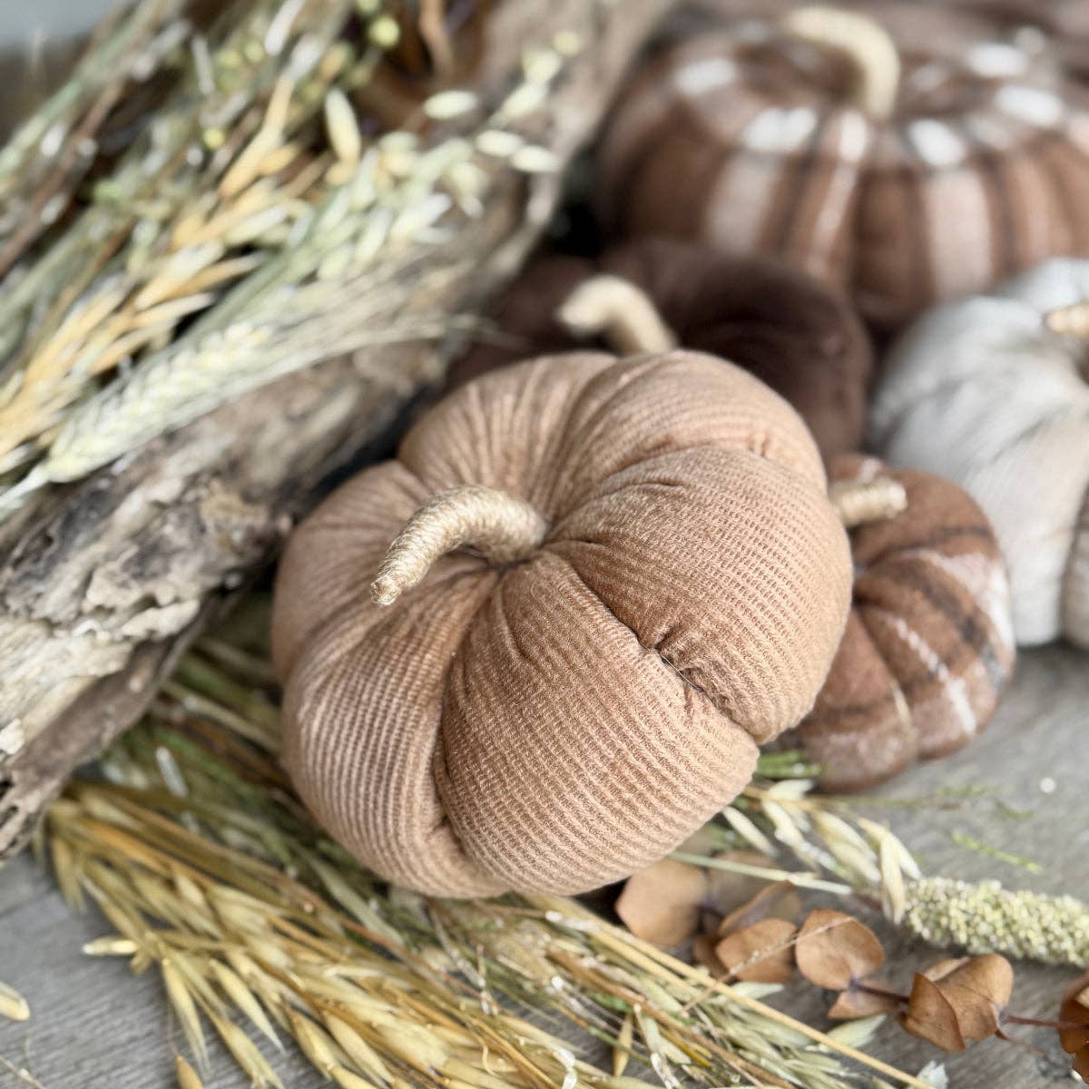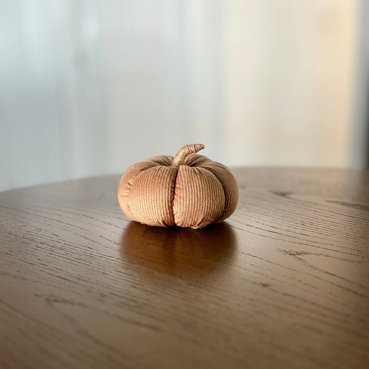 Tan Corduroy Pumpkin with Jute Wrapped Stem