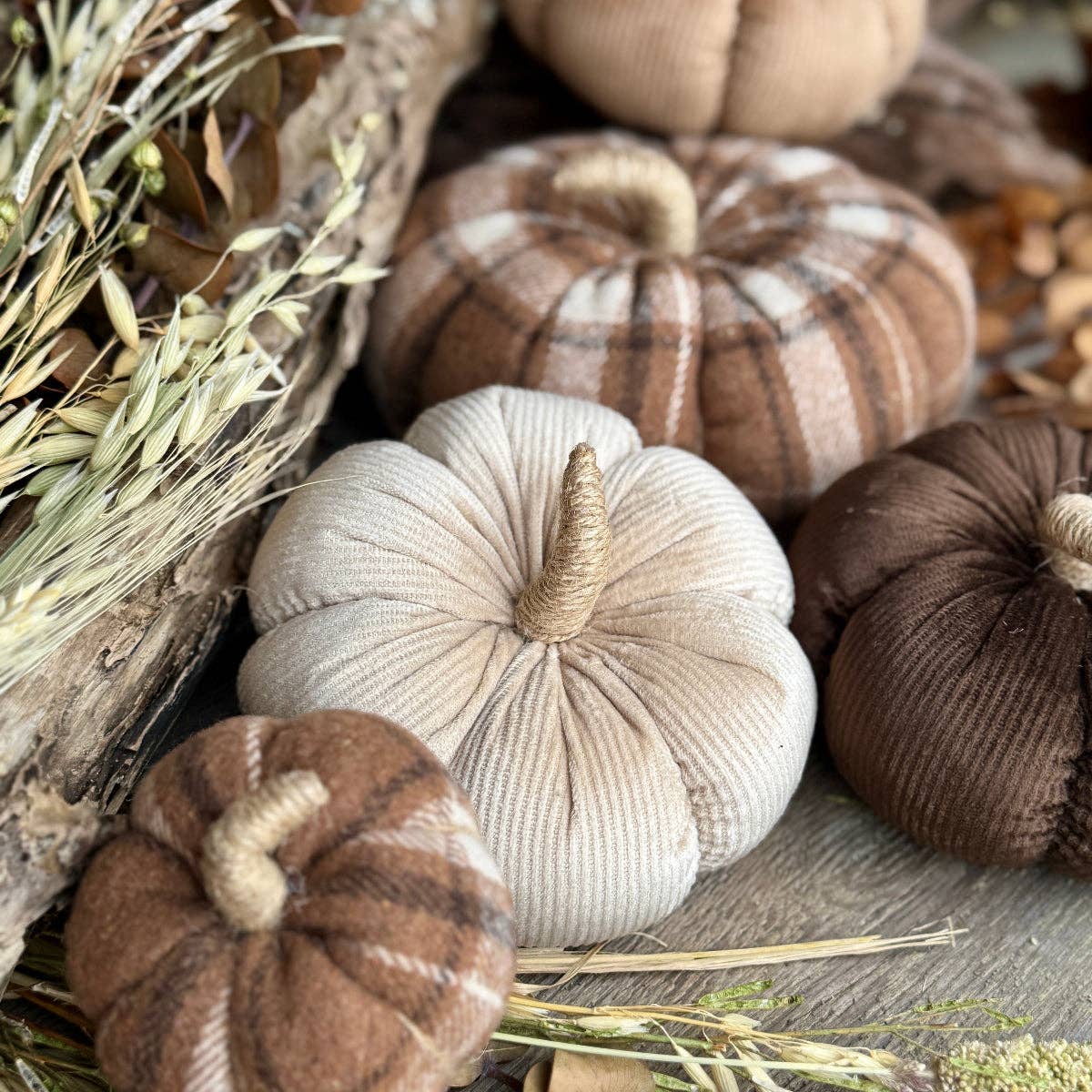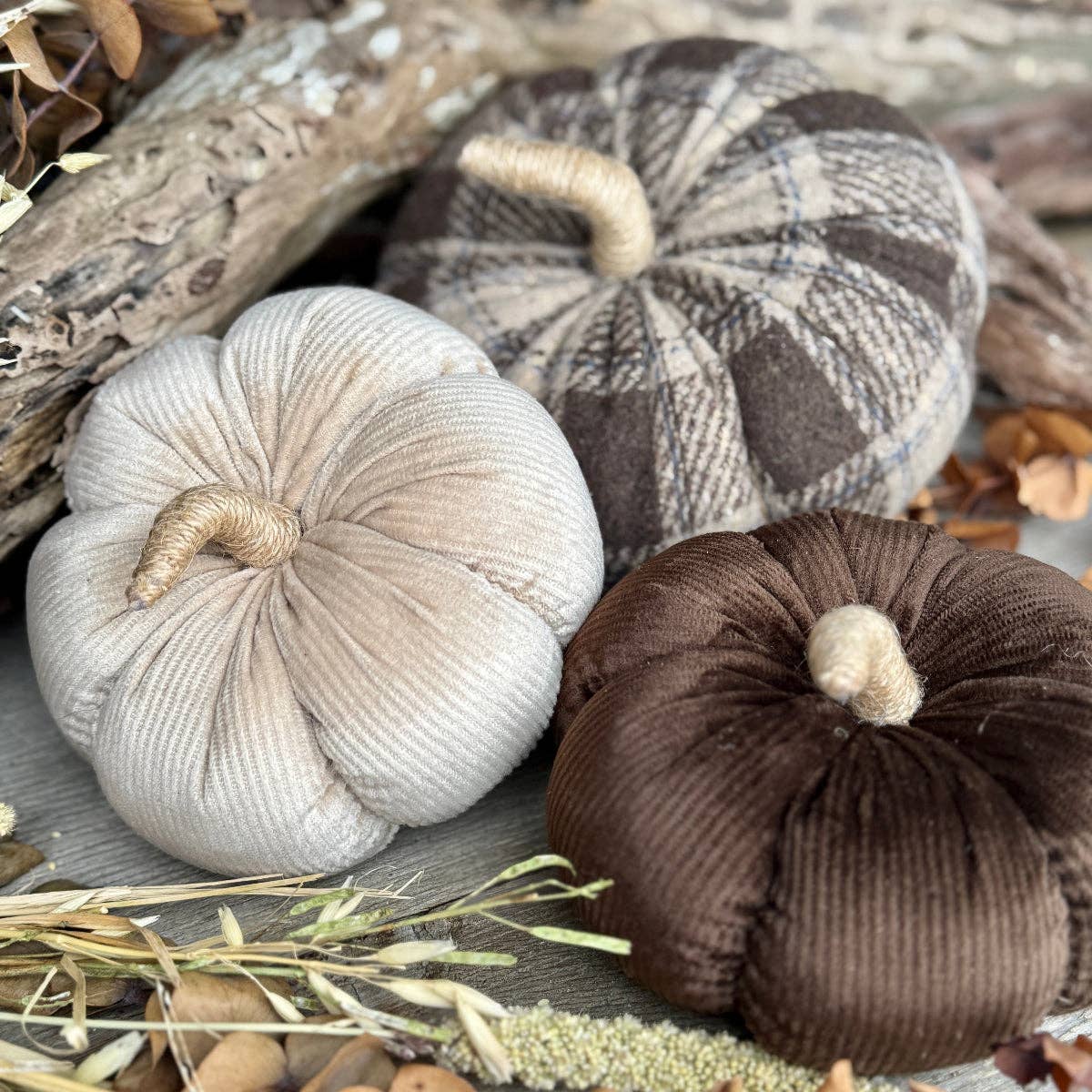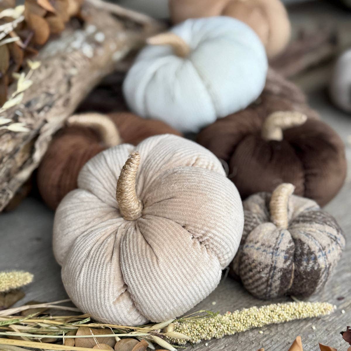 Almond Corduroy Pumpkin with Jute Wrapped Stem