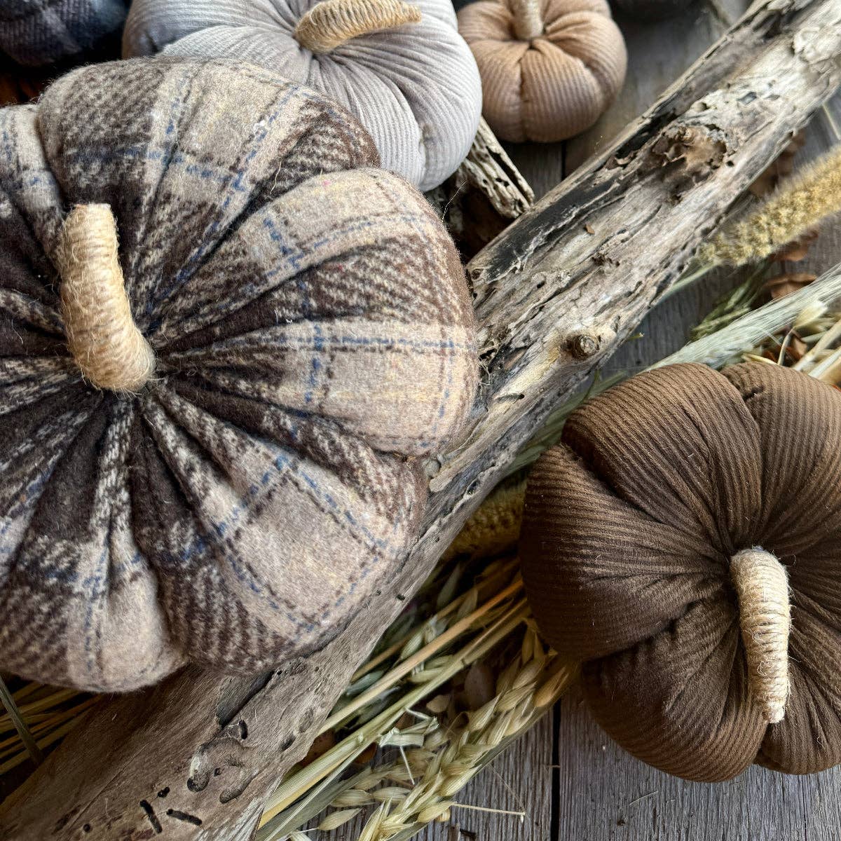 Large Montana Plaid Pumpkin with Jute Wrapped Stem