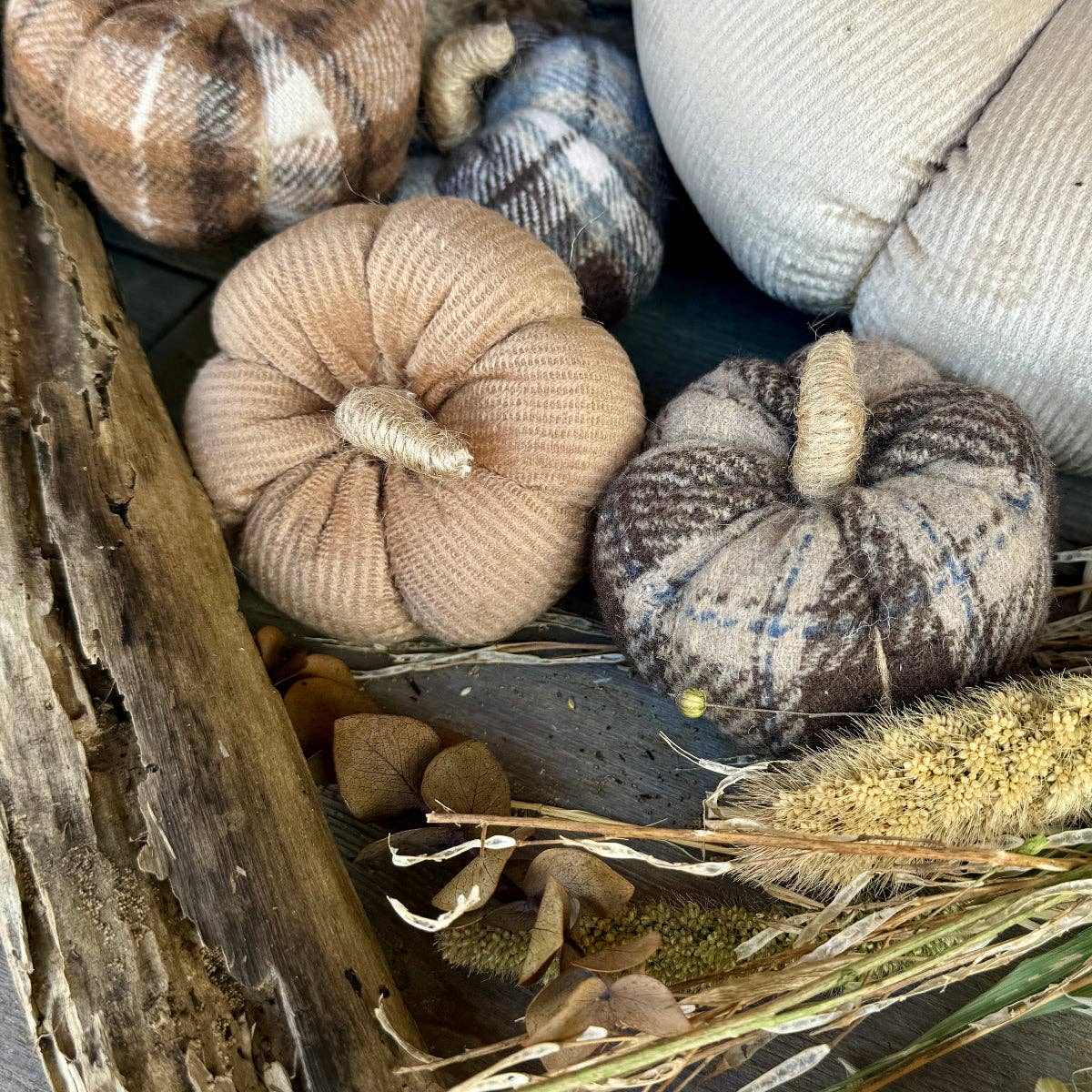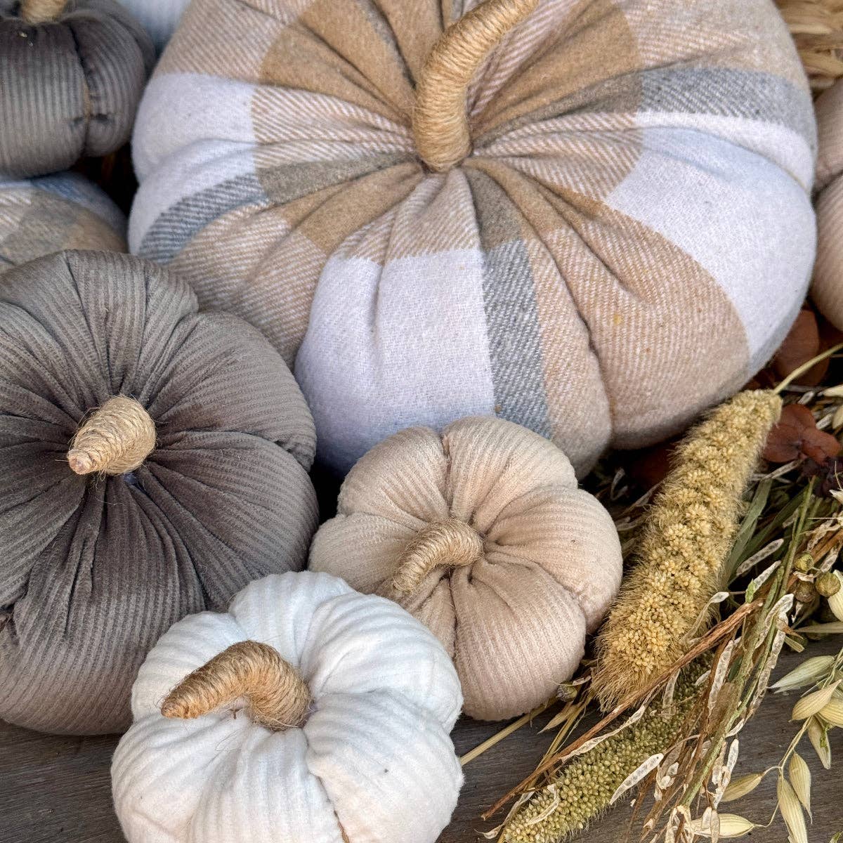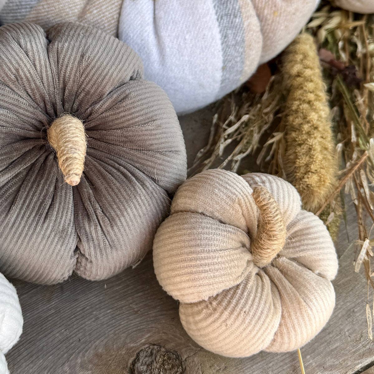 Almond Corduroy Pumpkin with Jute Wrapped Stem