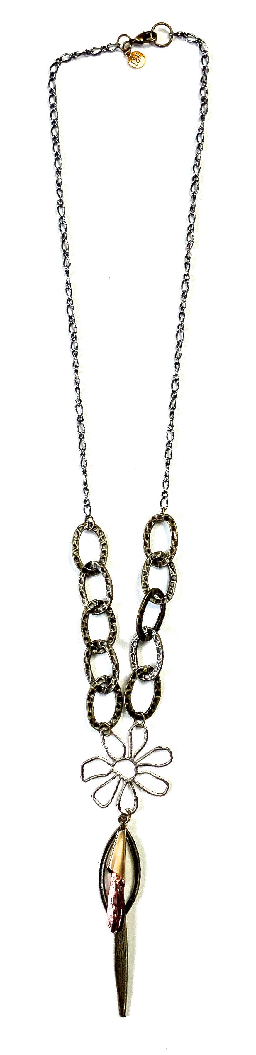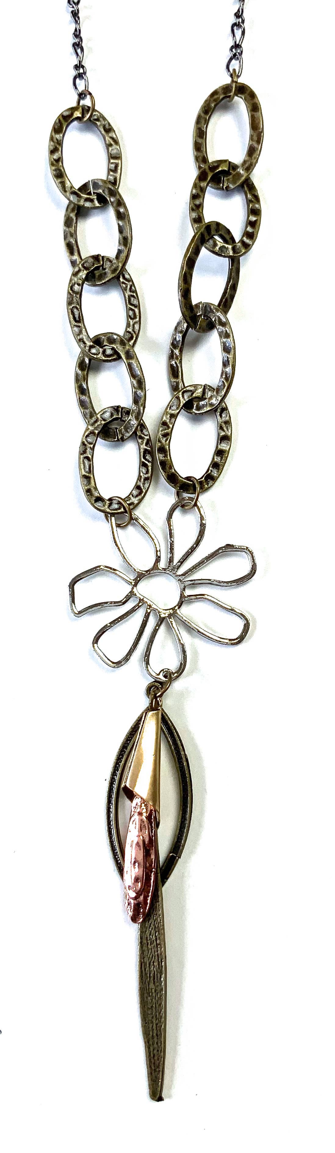 Necklace- Mixed Chains with Abstract Flower Collage Dangle