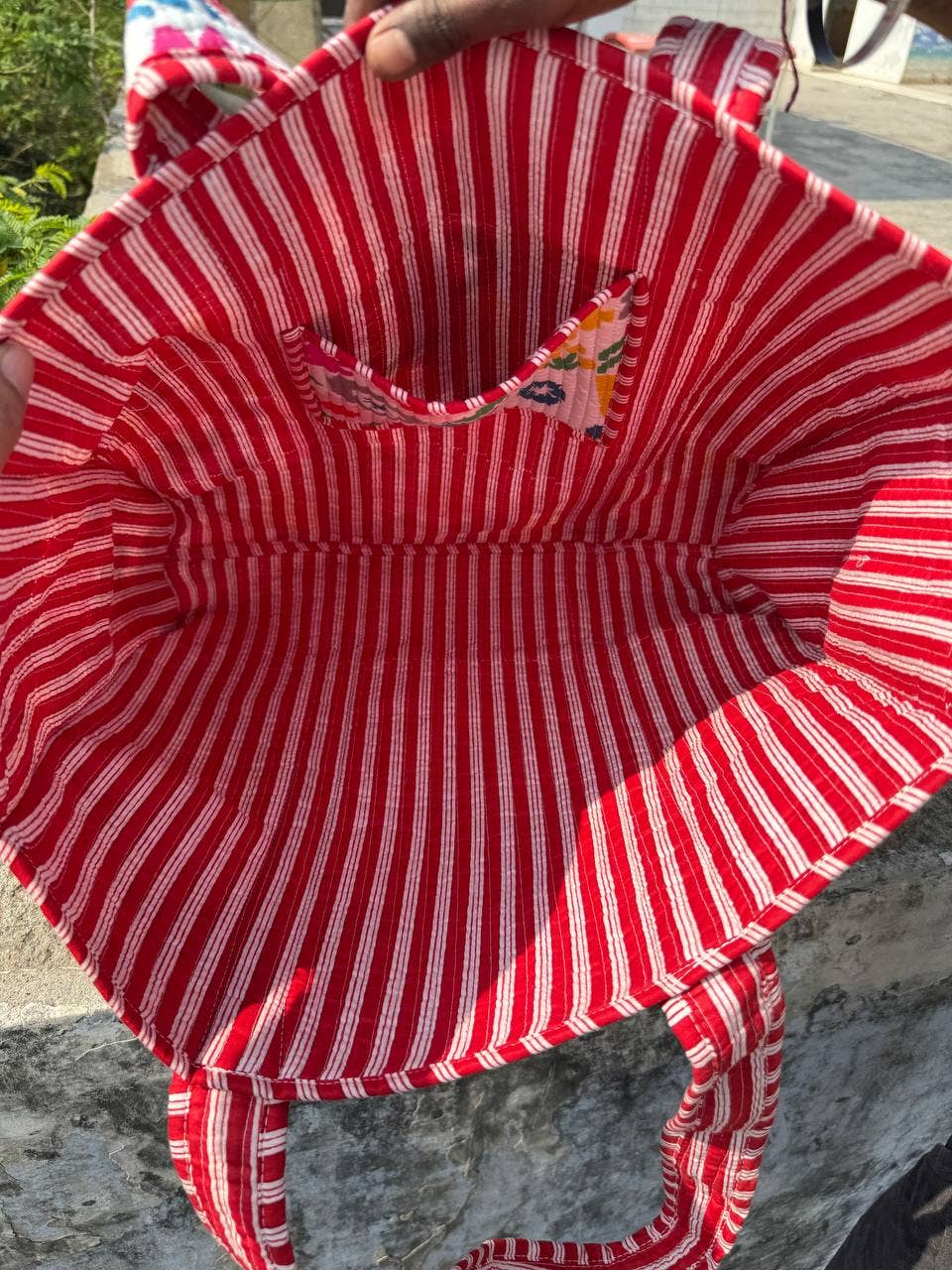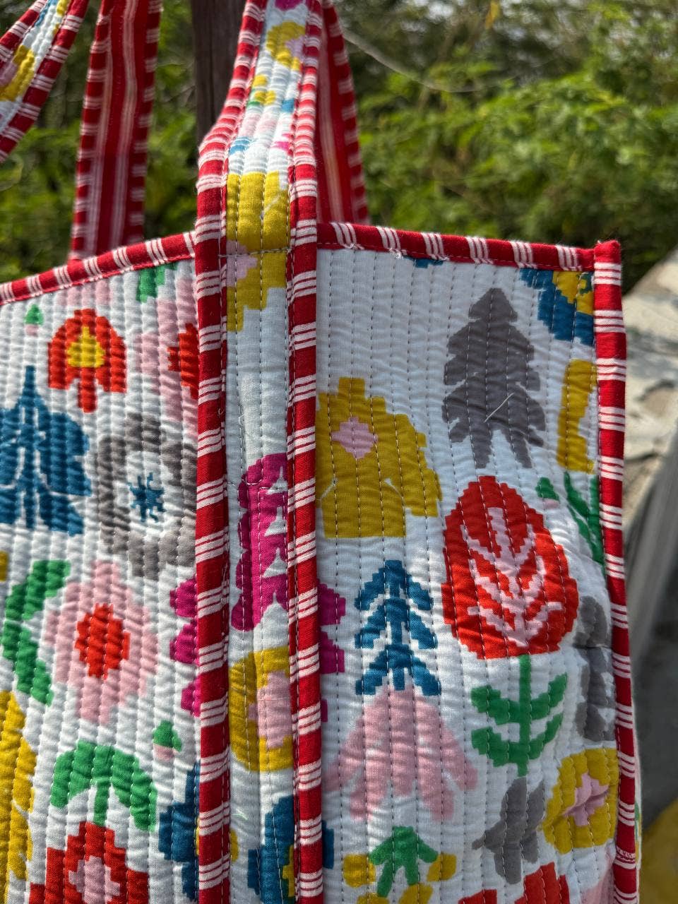 Cotton quilted travel bag made by Indian Artisans, This cotton quilted shopping bag is totally unique and multi purpose. Use this for your grocery or as a travel bag. Perfect to suit everyone.