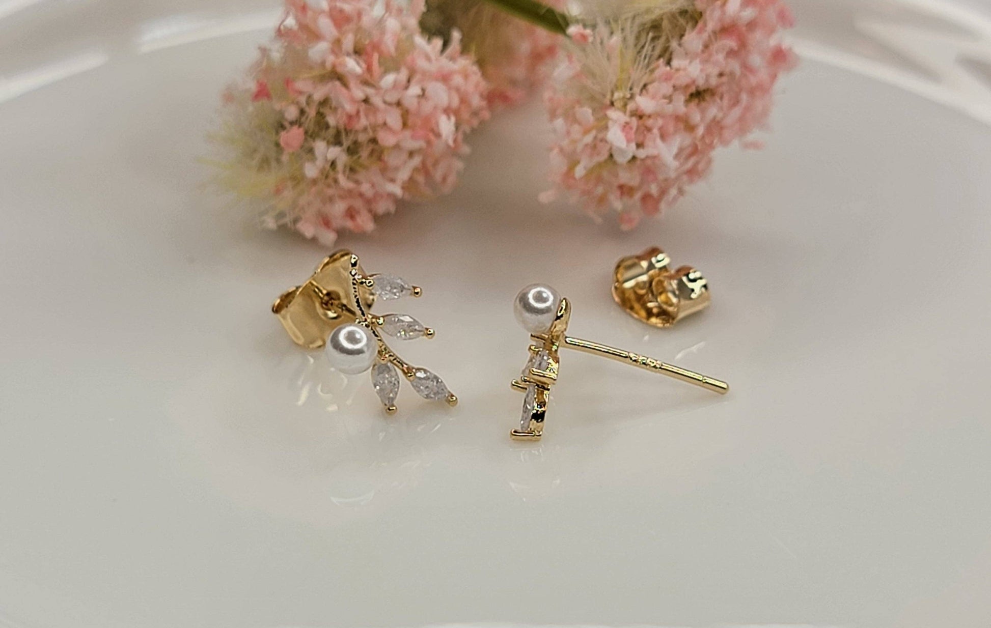 Material: silver post, cubic zirconia, faux pearl, lead & nickel free.