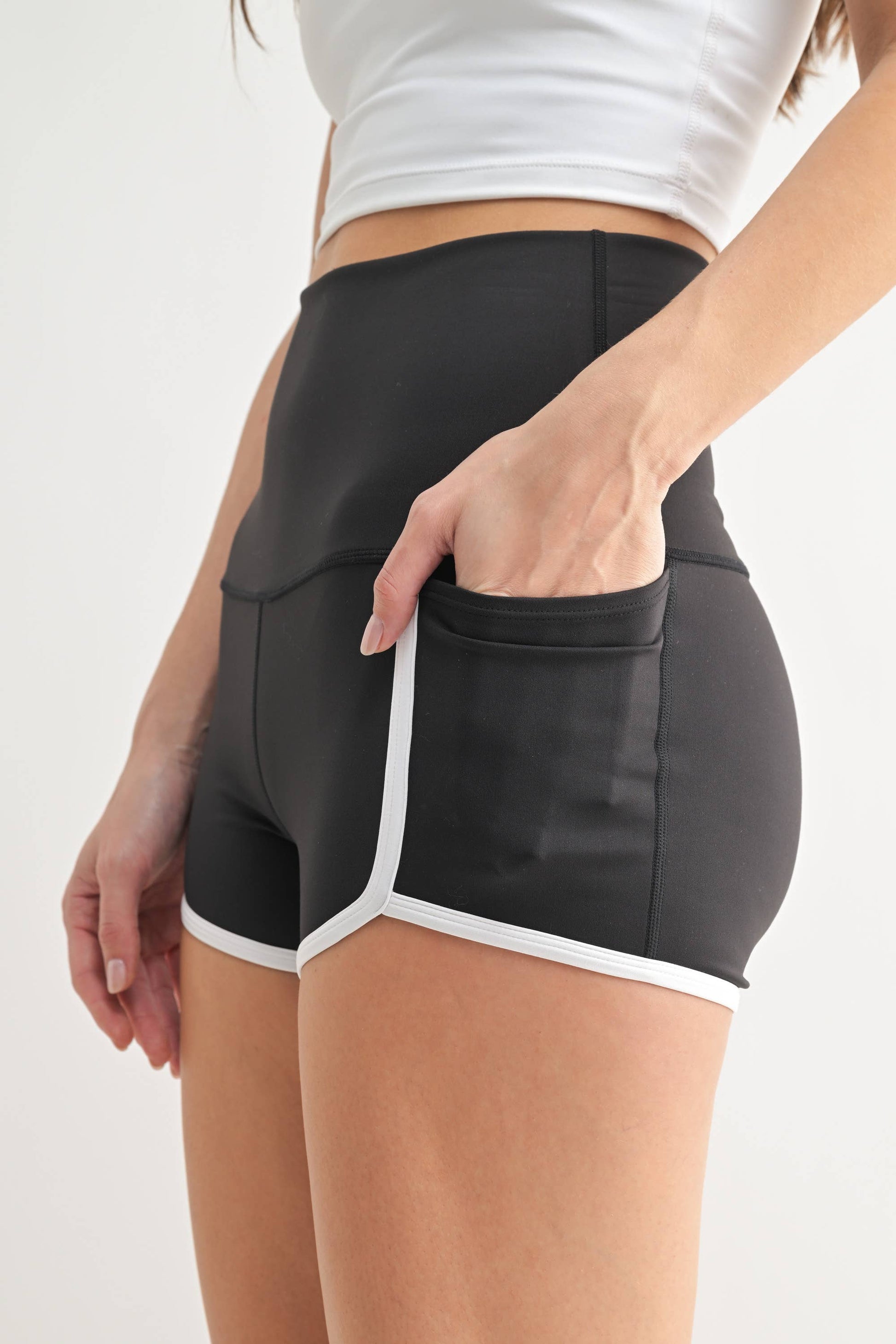 Elevate your activewear collection with these high-performance polyester spandex shorts. These shorts offer lightweight breathability and 4-way stretch for maximum comfort and flexibility. The foldover waistband provides a customizable fit, while side pockets and a single back pocket add functionality. Contrast piping gives them a retro feel, making them perfect for workouts, runs, or casual lounging. Whether you're on the move or taking it easy, these shorts keep you looking stylish and feeling comfortable.