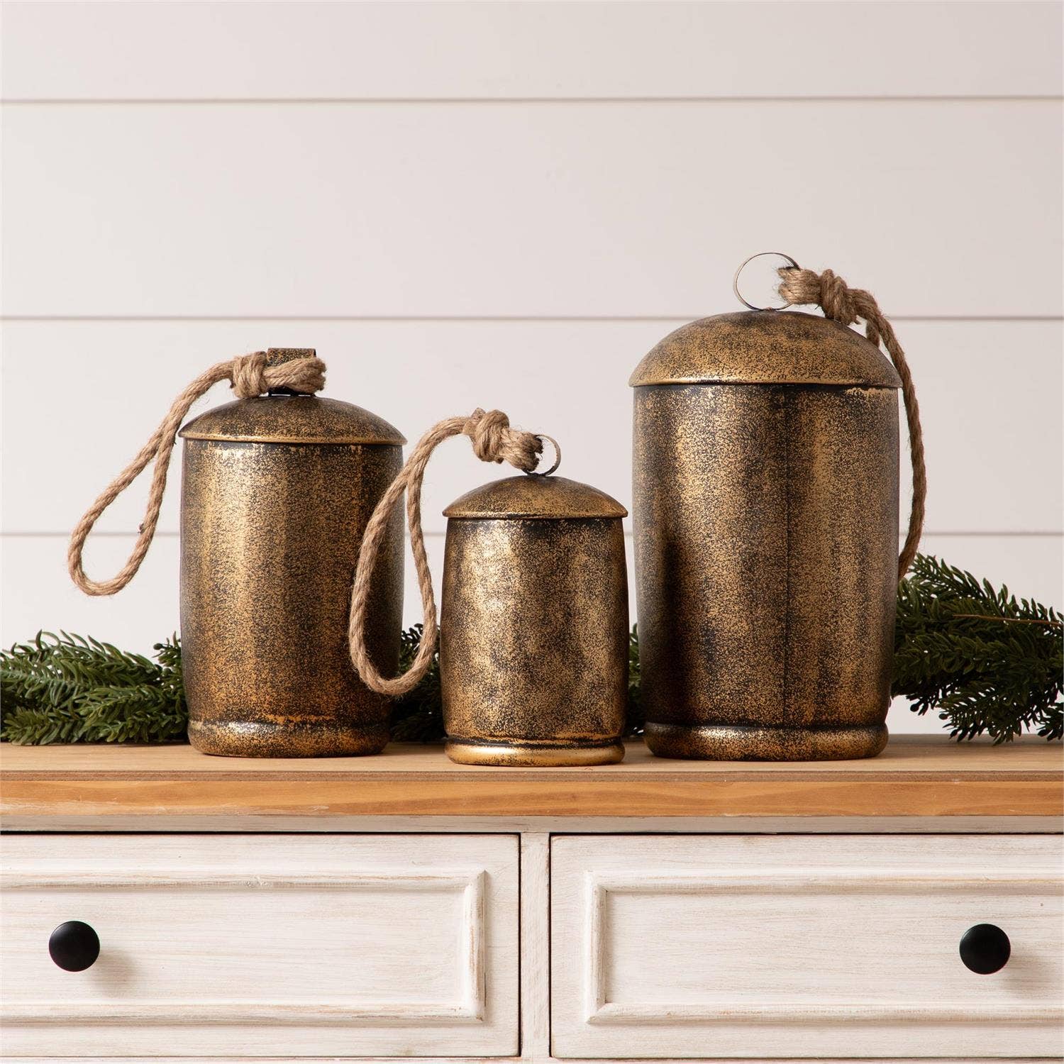 Metal, Rope 12" H x 7" Dia, 10" H x 5.5" Dia, 7" H x 4.5" Dia. Pkg Desc: Set Of 03