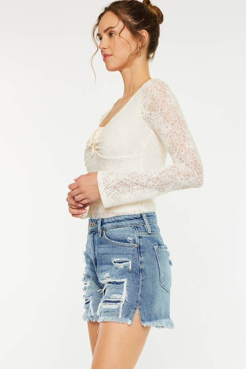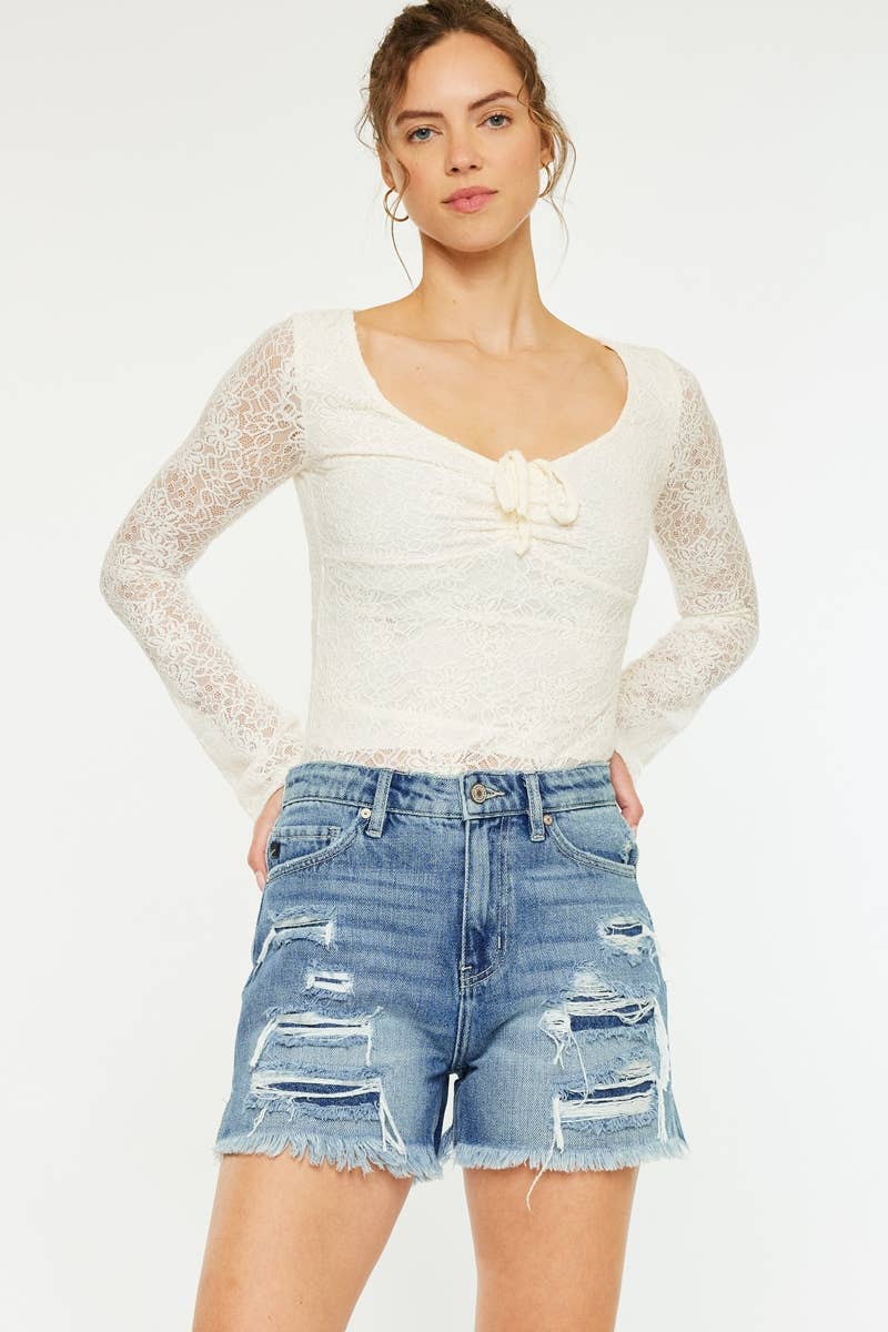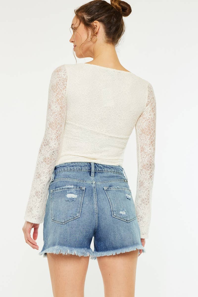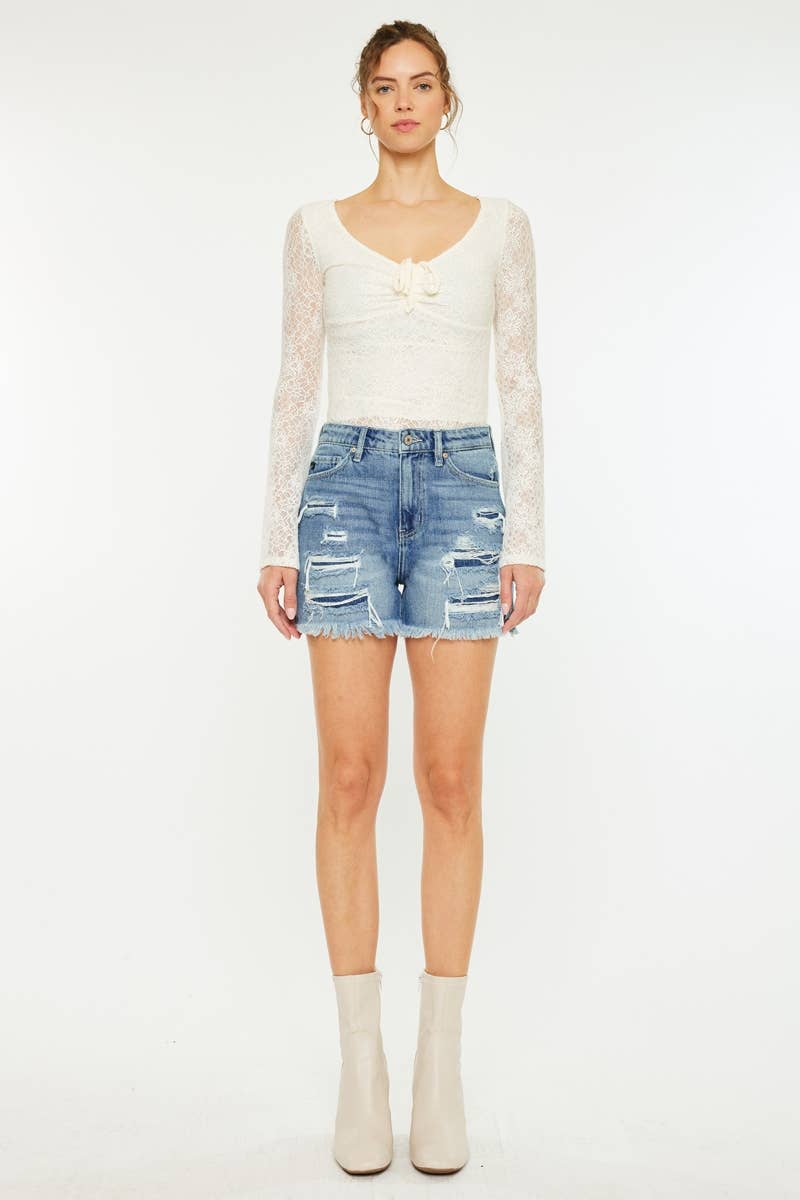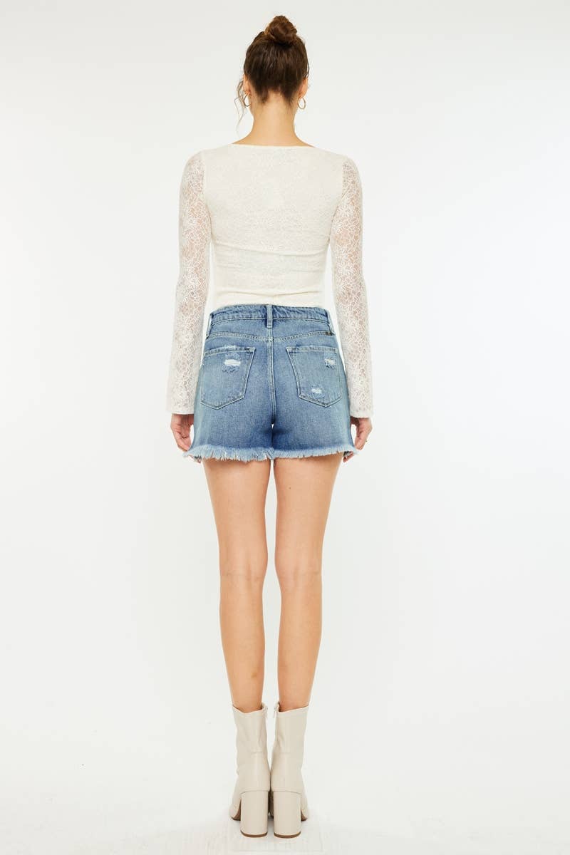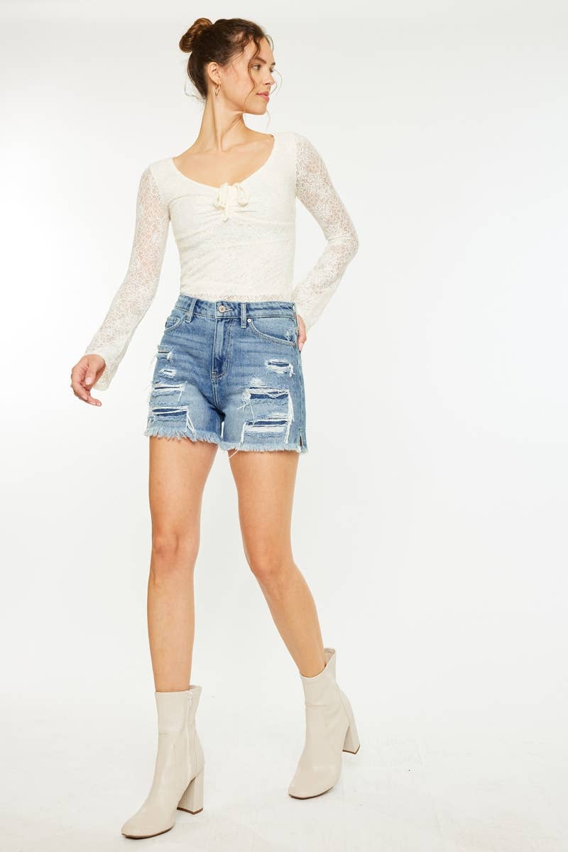 HIGH RISE INSIDE PATCHED FRAY HEM MOM SHORT