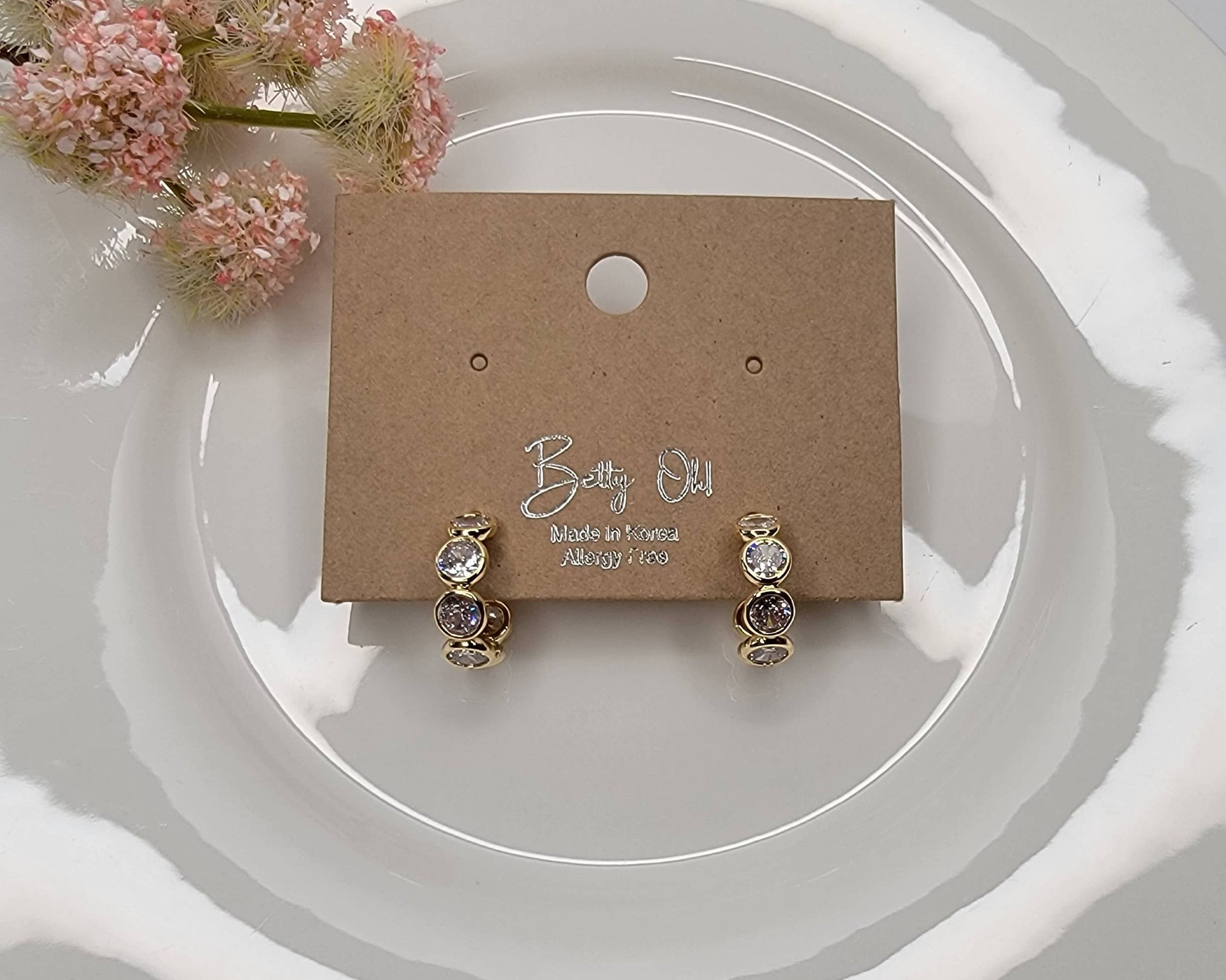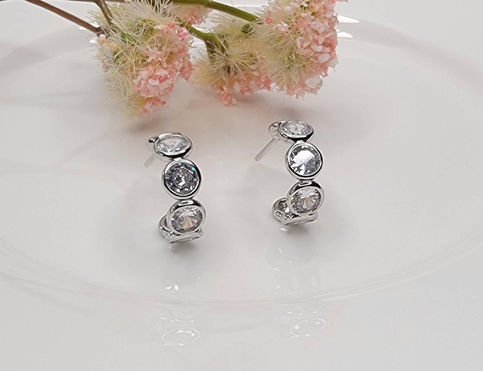 MATERIAL: TITANIUM POST, CUBIC ZIRCORNIA, RHODIUM PLATED, LEAD & NICKEL FREE.