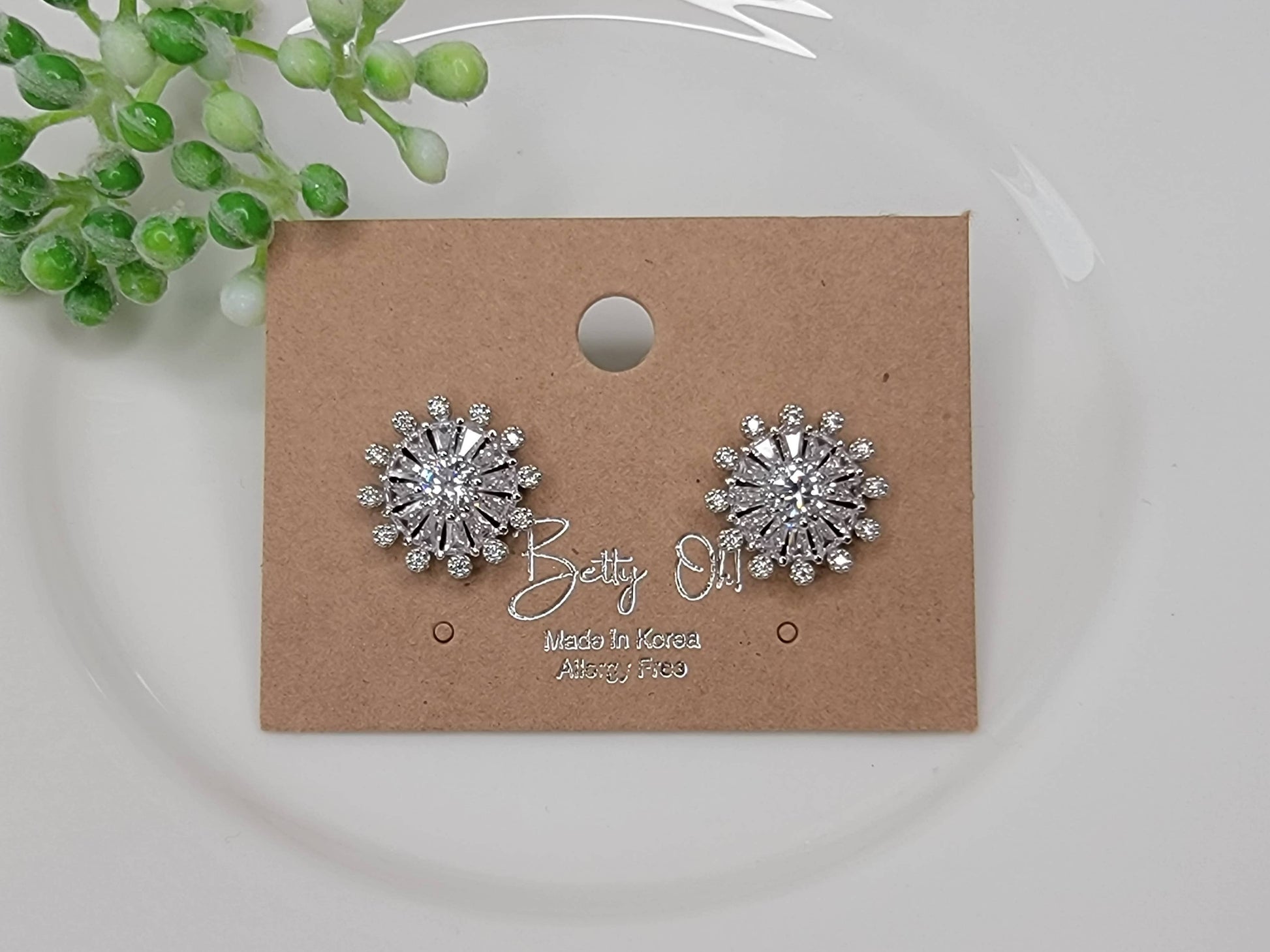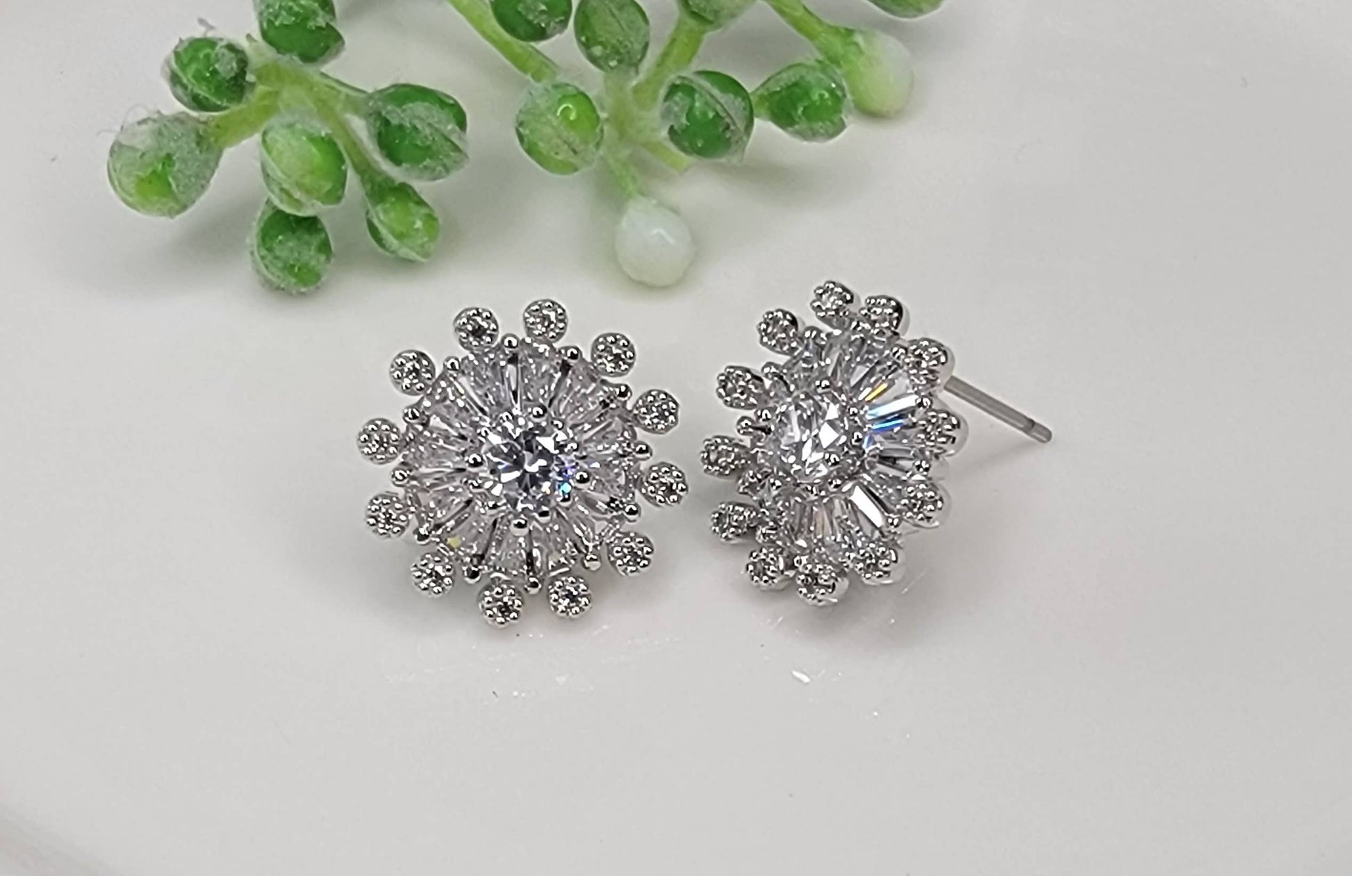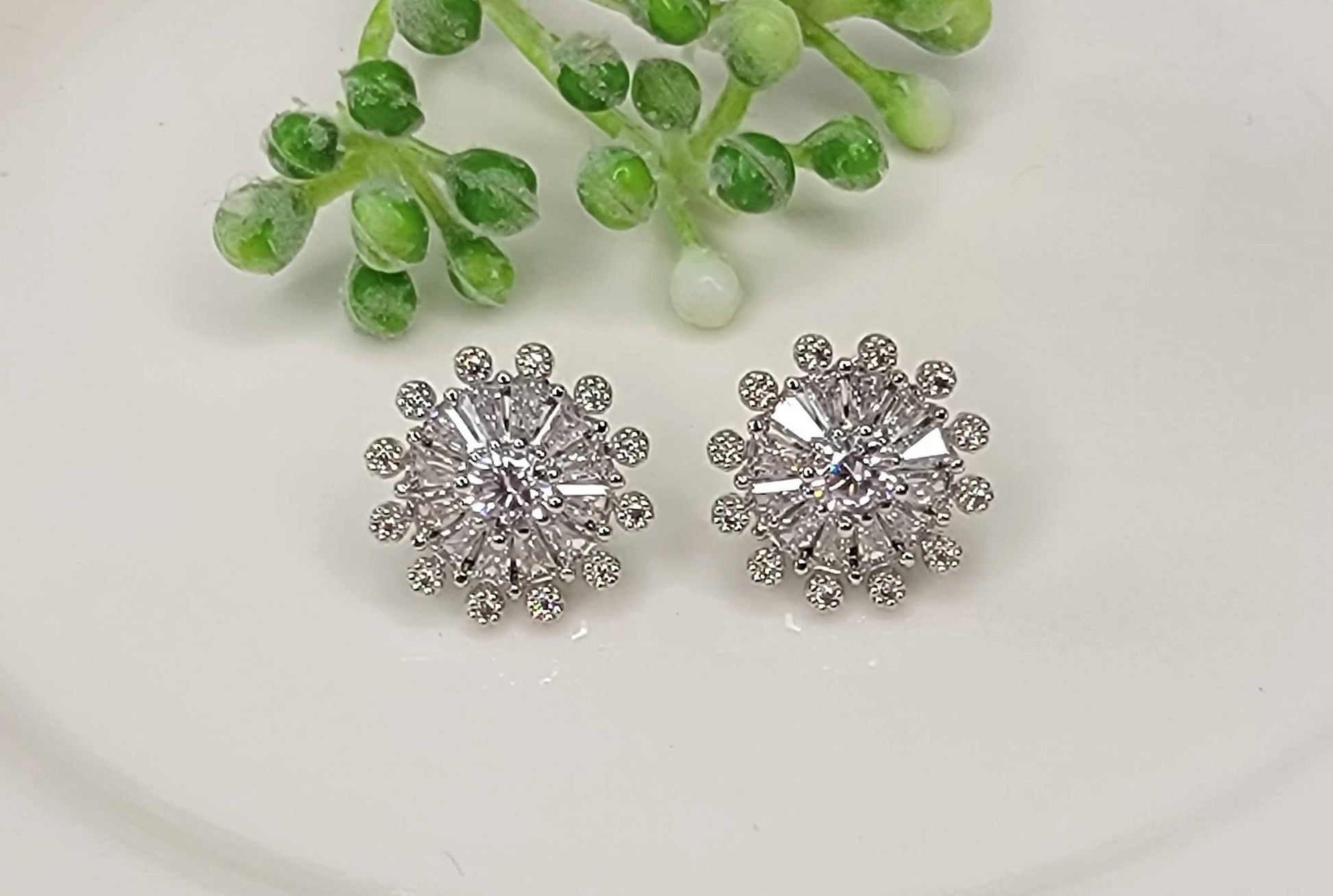 Hypoallergenic Silver Post Cz Delicate Style Cluster Earring