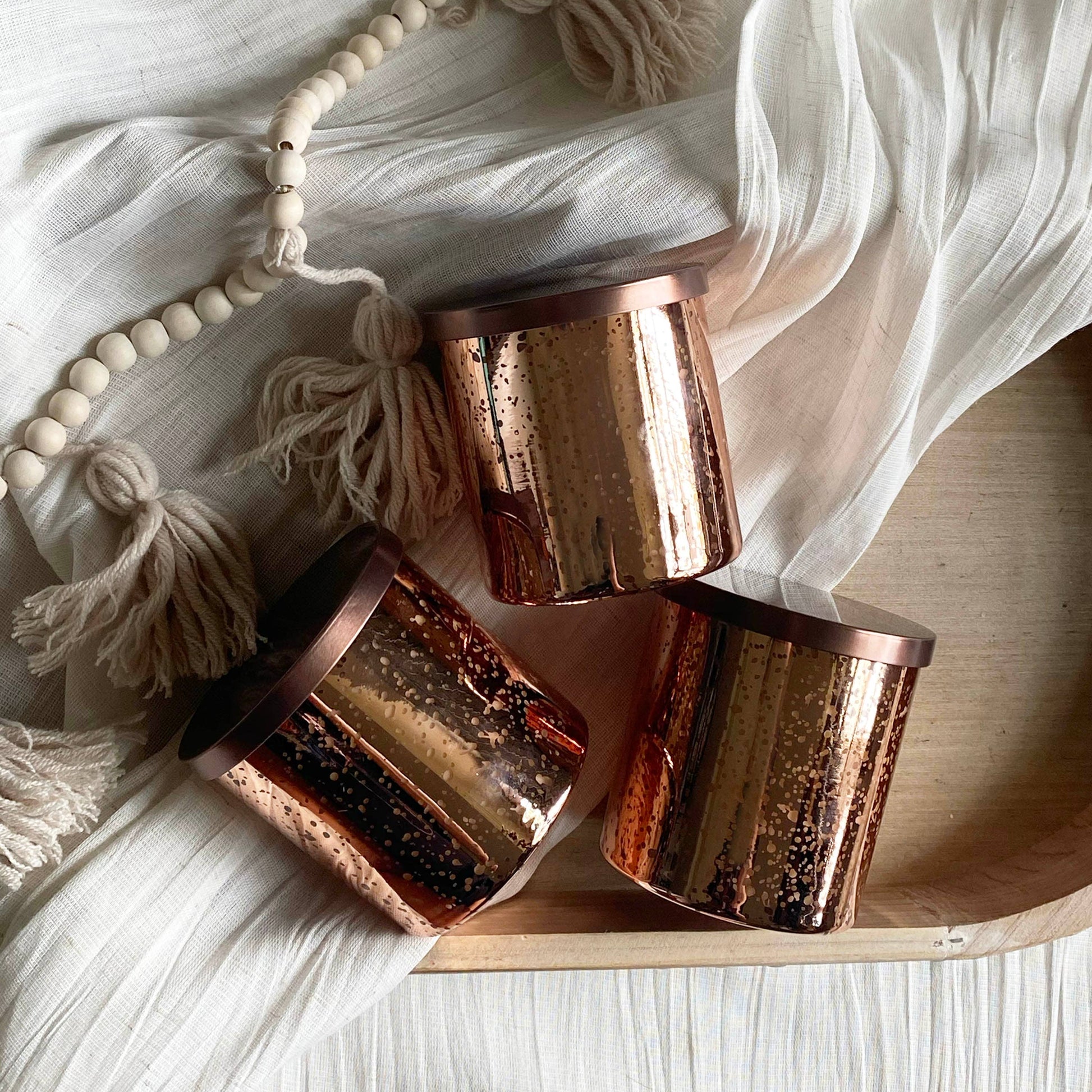 Warmth meets elegance in our Copper Mercury Candle, where old-world charm and modern glow come together. Housed in a luminous mercury glass vessel with a radiant copper finish, this candle adds a touch of vintage sophistication to any space—even before it's lit.