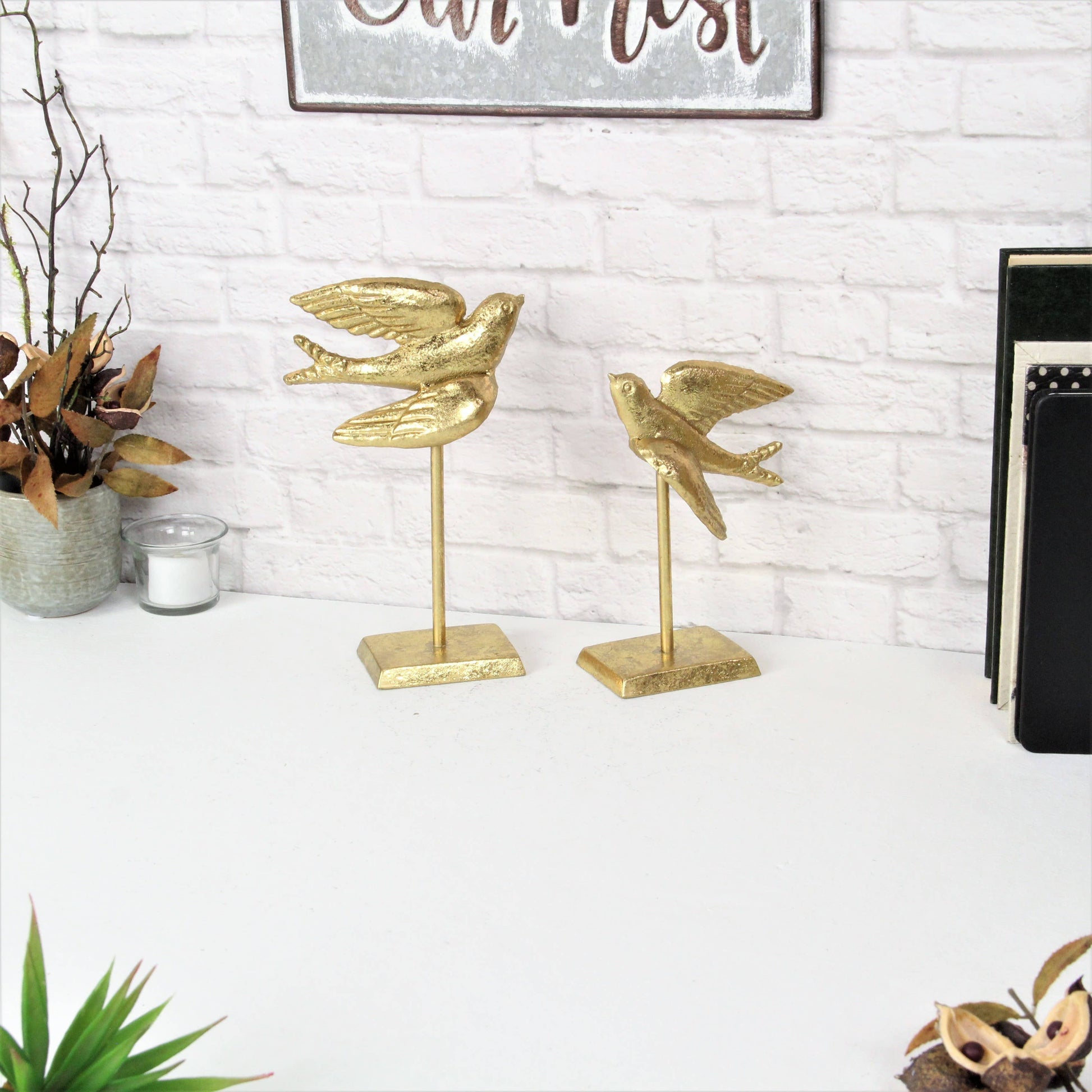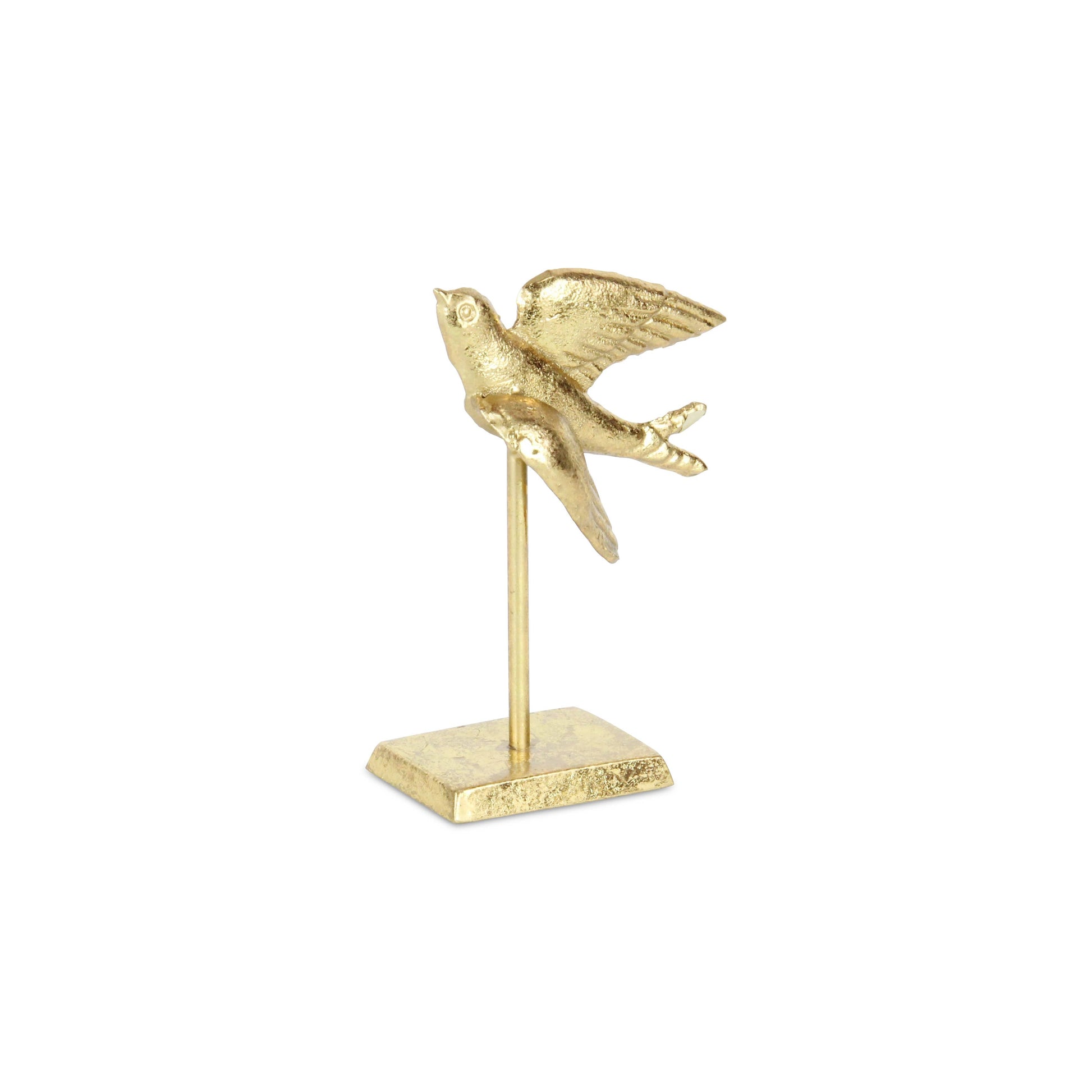 - Features a flying swallow sculpture raised on a cast iron pole and base