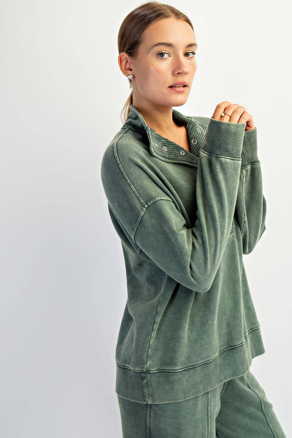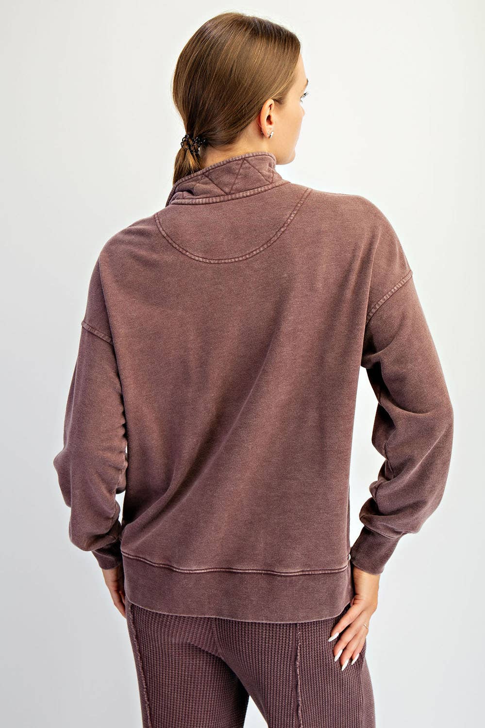 Stay effortlessly cool in this mineral-washed quarter snap pullover. Made from soft French terry fabric, it features contrast waffle knit accents for added texture and style. The mineral wash finish gives it a lived-in, vintage look, while the quarter snap neckline adds a functional, laid-back vibe. Perfect for layering or lounging, this pullover brings comfort and character to your everyday wardrobe.