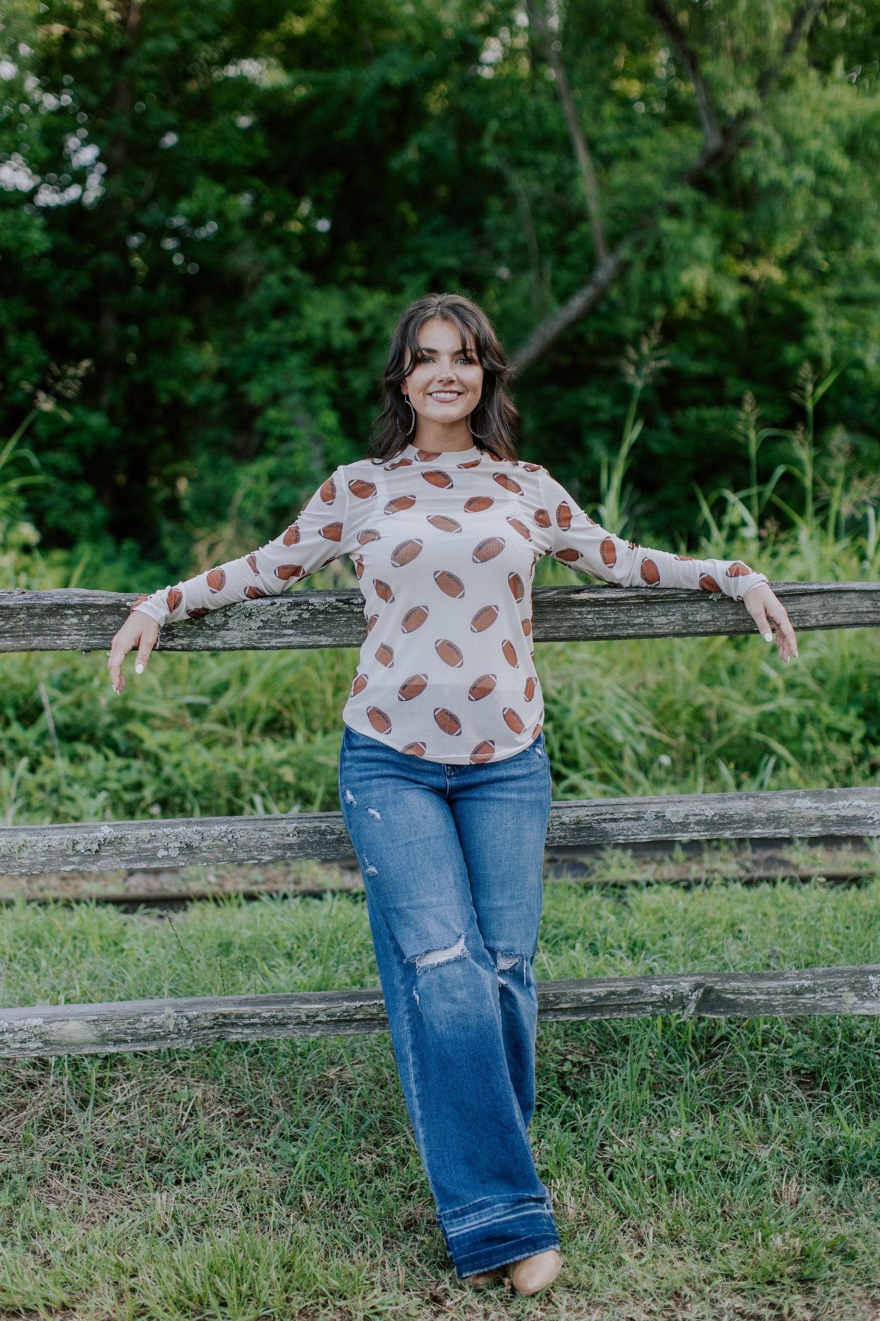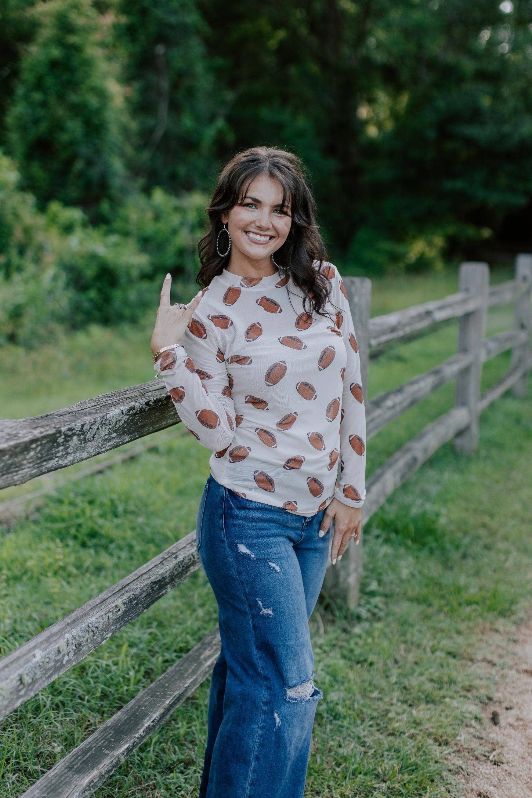 This women's knit top is designed with a mesh fabric and features long sleeves for a sporty look. It's perfect for cheering on your favorite team. Show off your western-inspired style with this top. Wear it with your favorite jeans for a game day look.