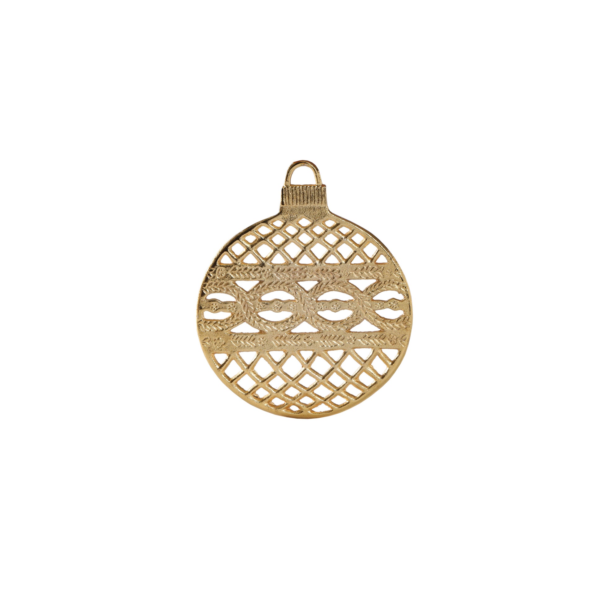 Add elegance to your holiday decor with this intricately designed 9.5-inch ornament-shaped trivet (TRV-0129). Crafted to resemble a classic Christmas tree bauble, its detailed cutouts and festive pattern make it a charming accent for your table or wall display.