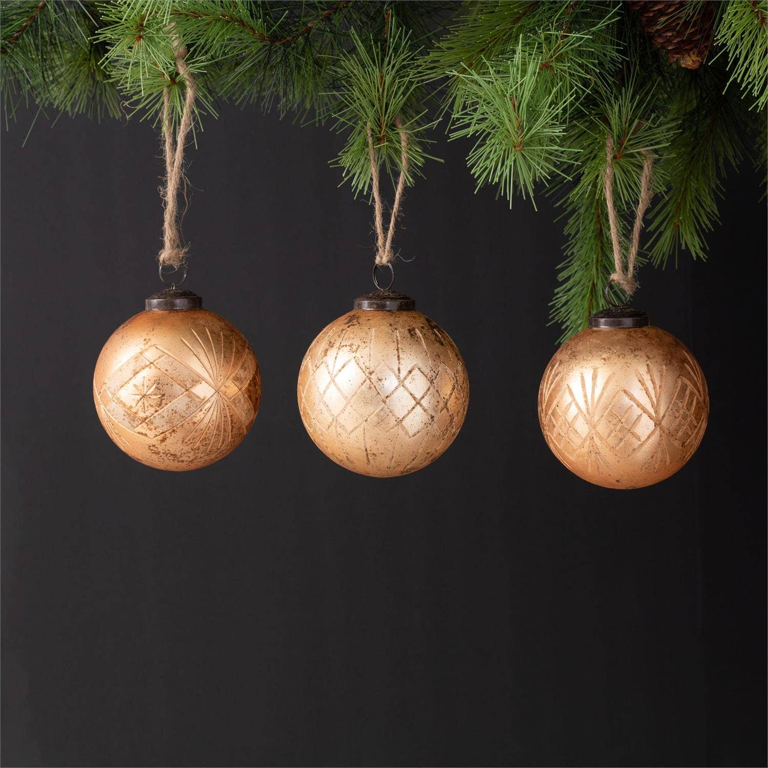 Ornaments - Rustic Rose Gold Etched Glass