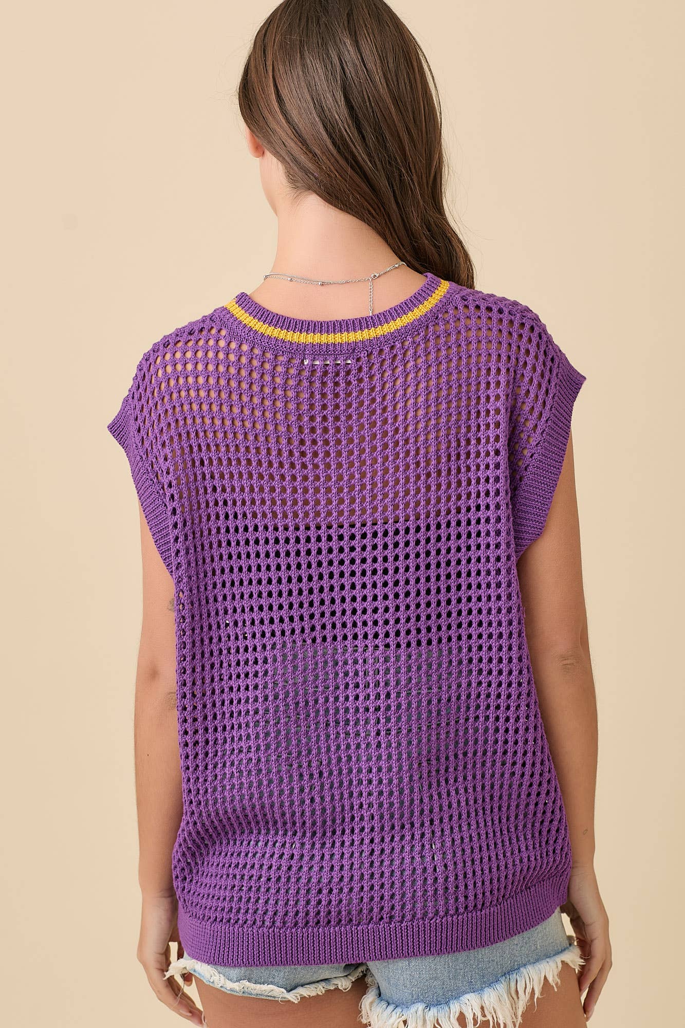 Oversized Drop Shoulder Crochet Sweater Knit Top