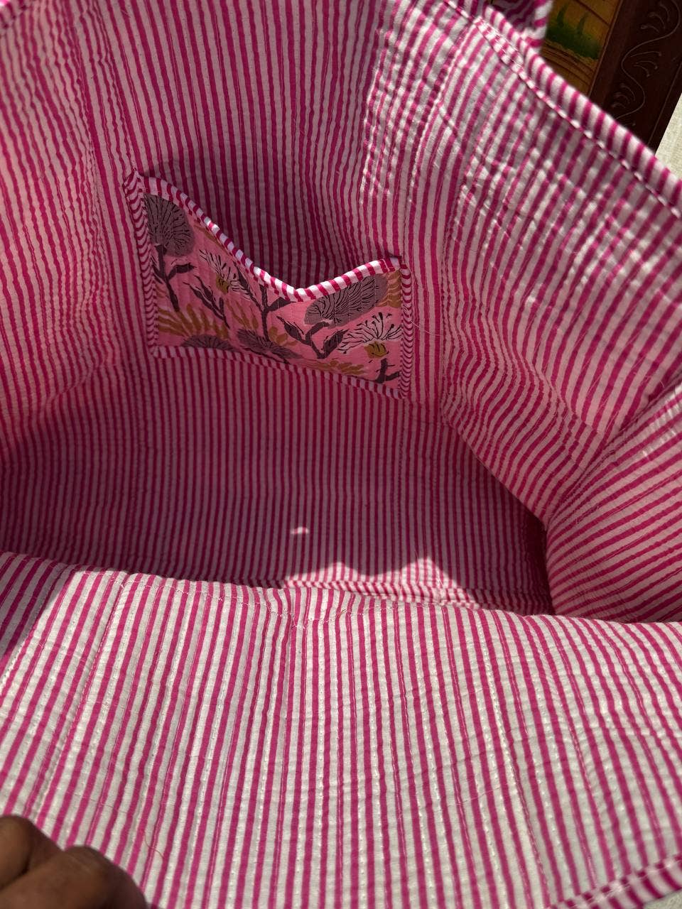 Cotton quilted travel bag made by Indian Artisans, This cotton quilted shopping bag is totally unique and multi purpose. Use this for your grocery or as a travel bag. Perfect to suit everyone.