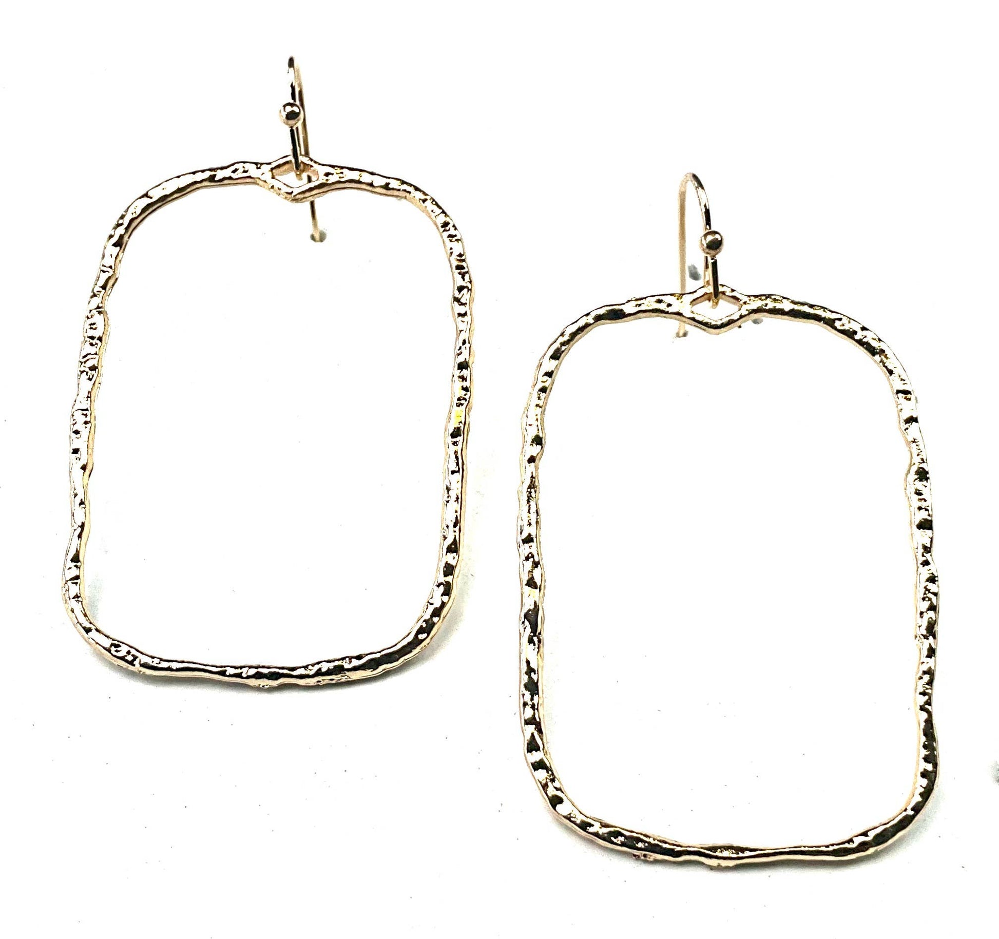 Discover the elegant simplicity of Lost & Found Trading's ER-Thin Hammered Rectangle/Silver earrings. These dangle earrings, crafted with meticulous attention to detail, feature a thin hammered rectangle in a radiant silver finish. Our design reflects the brand's dedication to offering unique, high-quality designs at an affordable price. Perfect for any occasion, they add a touch of sophisticated charm to your look. Enjoy the fine craftsmanship from our boutique factory and the unique style it brings to your jewelry collection.