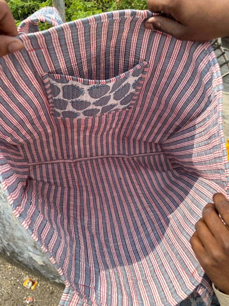 Cotton quilted travel bag made by Indian Artisans, This cotton quilted shopping bag is totally unique and multi purpose. Use this for your grocery or as a travel bag. Perfect to suit everyone.