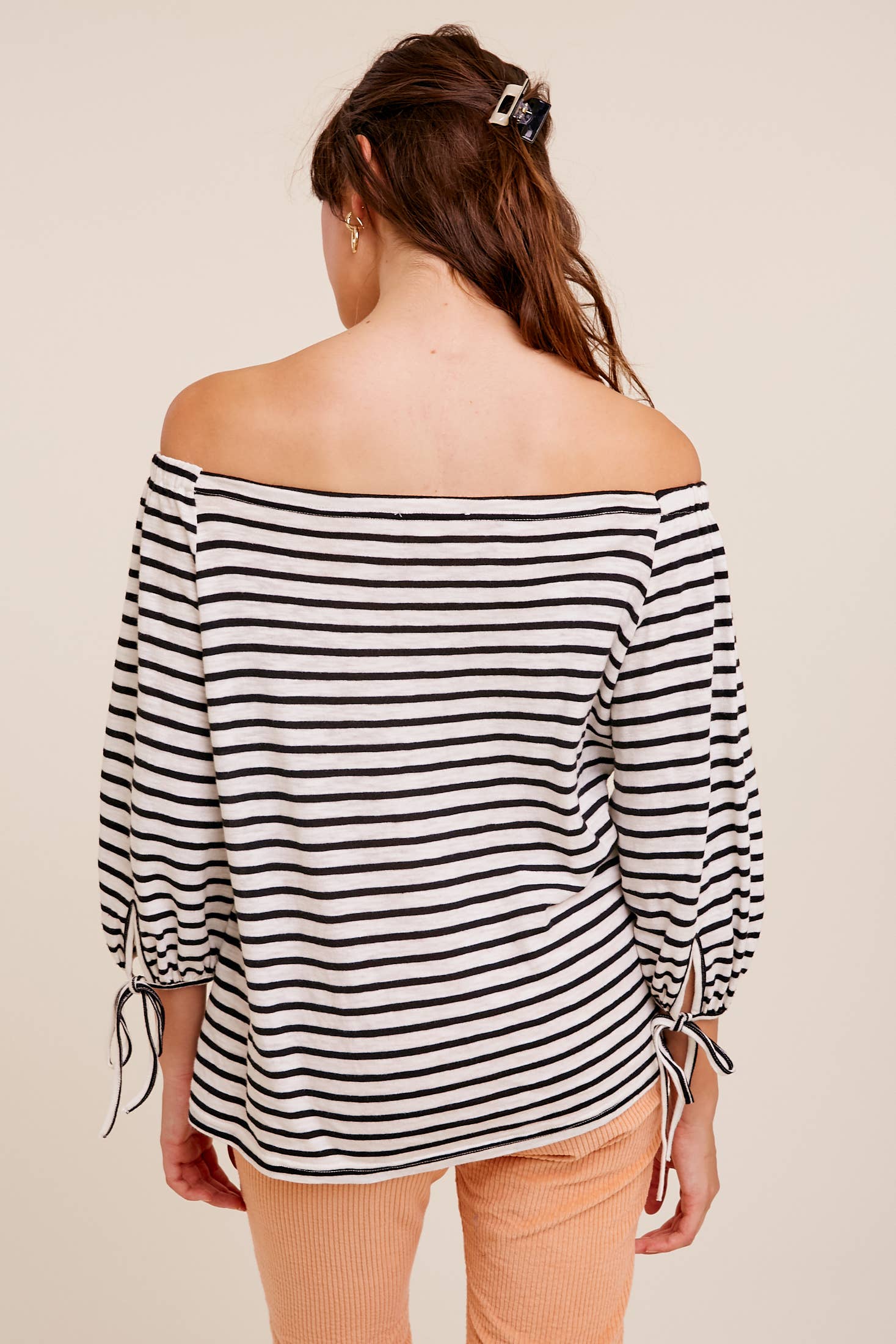 A stylish everyday essential, this striped off-shoulder top brings a fresh and modern twist to casual dressing.