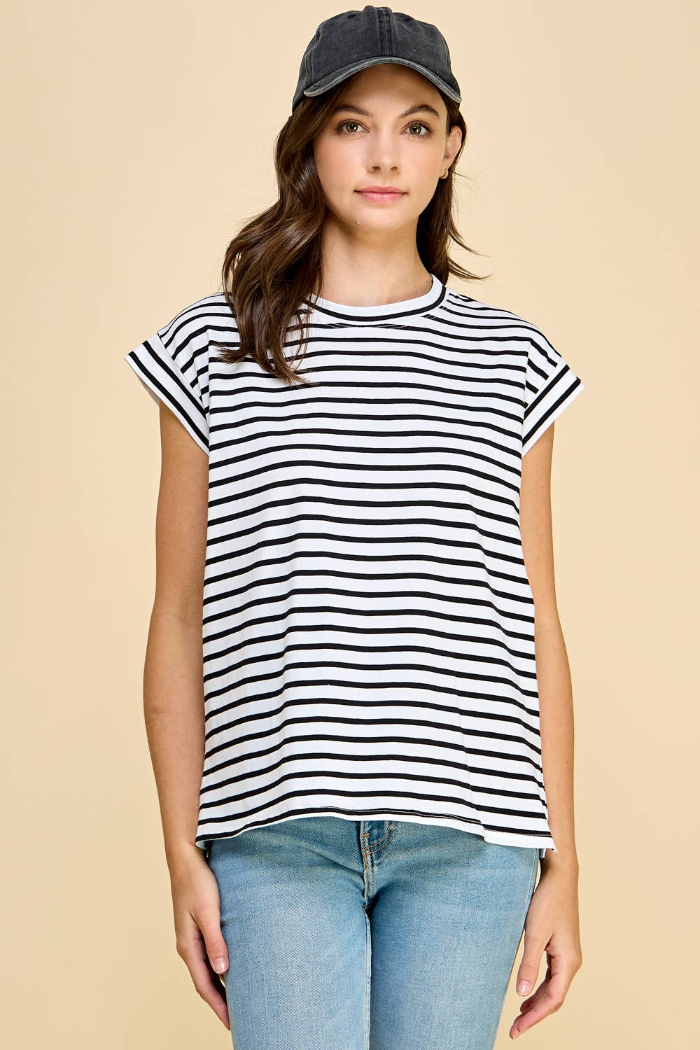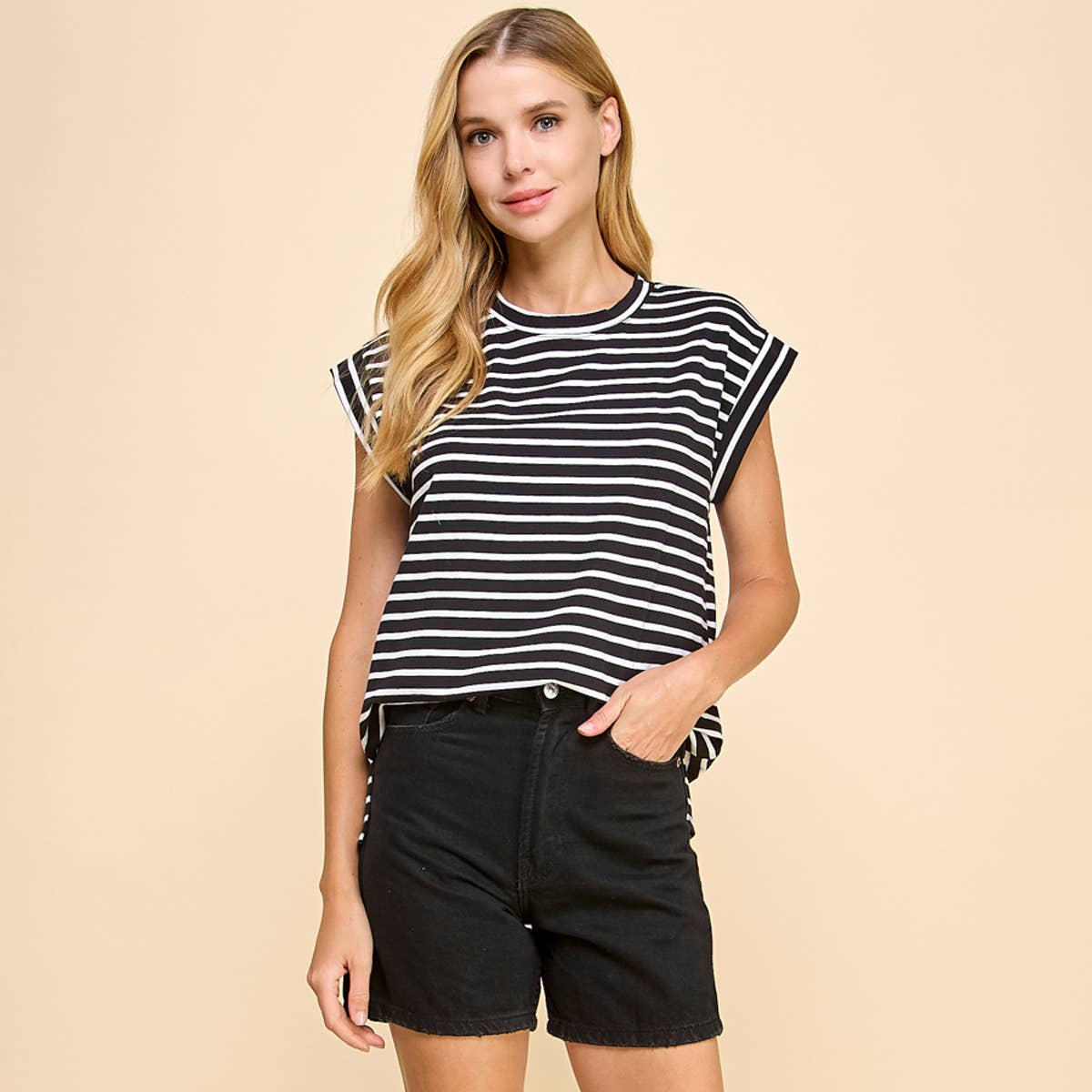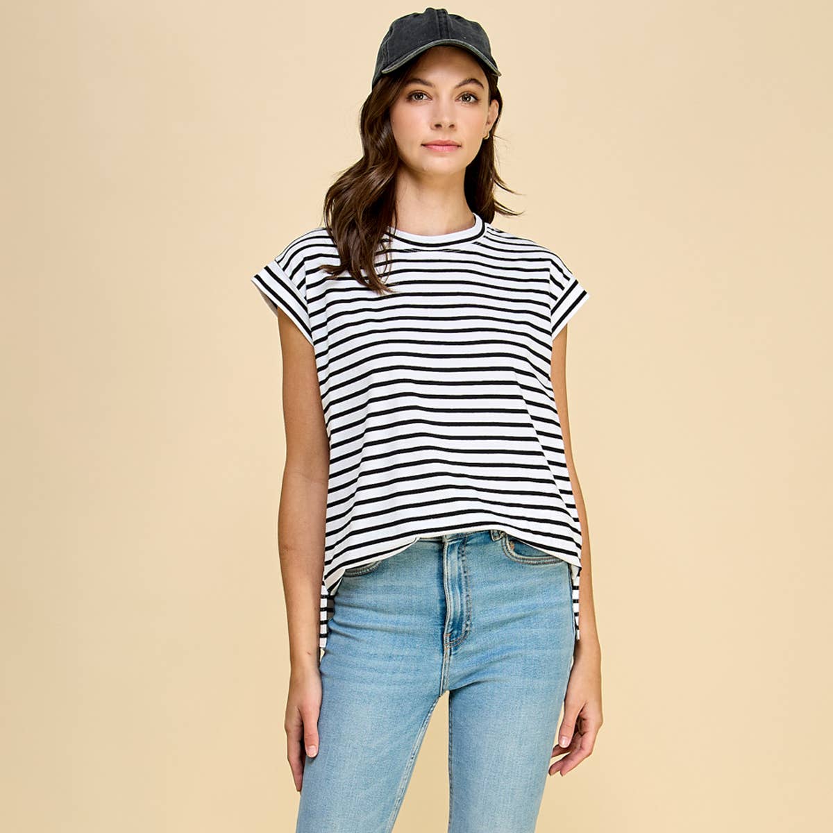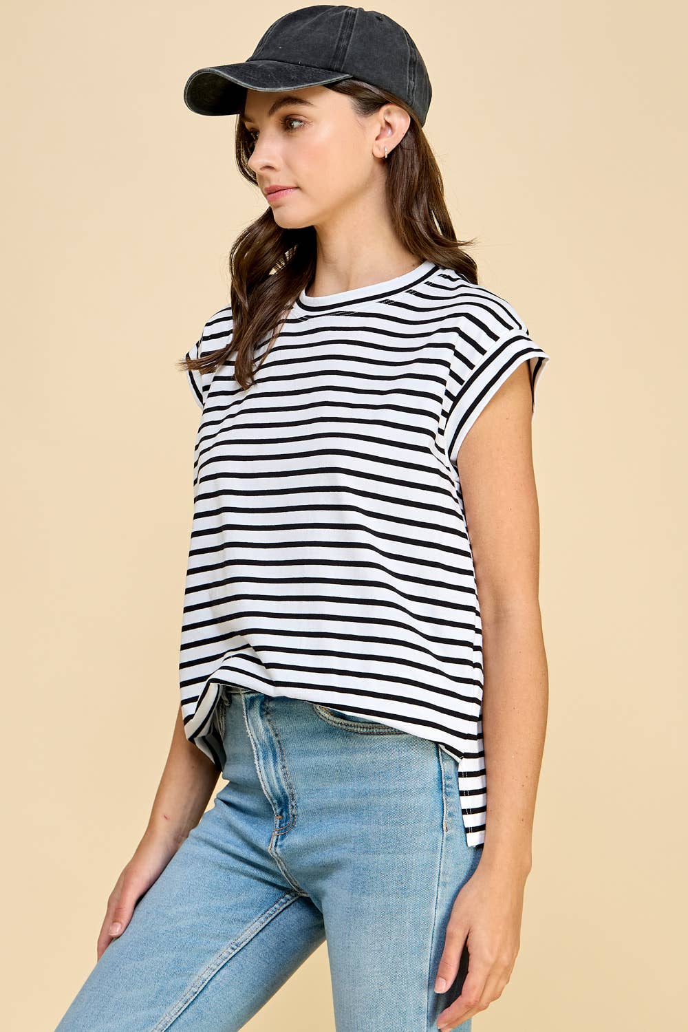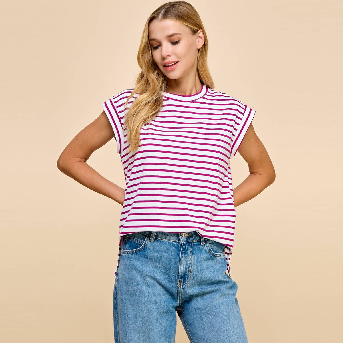 This sleeveless top blends solid color simplicity with vibrant striped accents. Crafted from breathable cotton, it offers comfort and a chic aesthetic. Perfect for casual outings or layering under jackets, its versatility makes it a wardrobe staple.