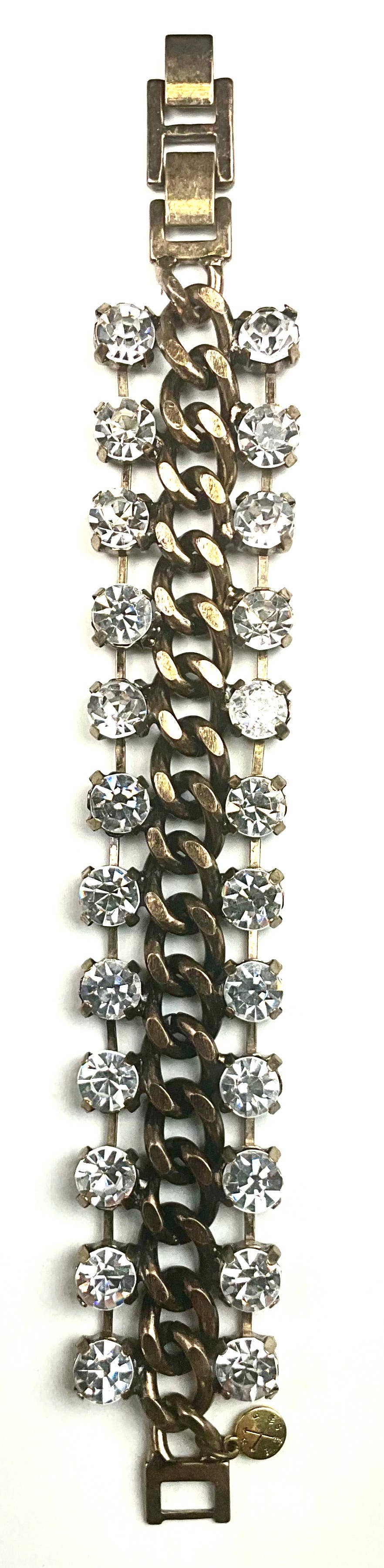 Bracelet Curb Chain and Cup Chains with Rhinestones and Fold Clasp