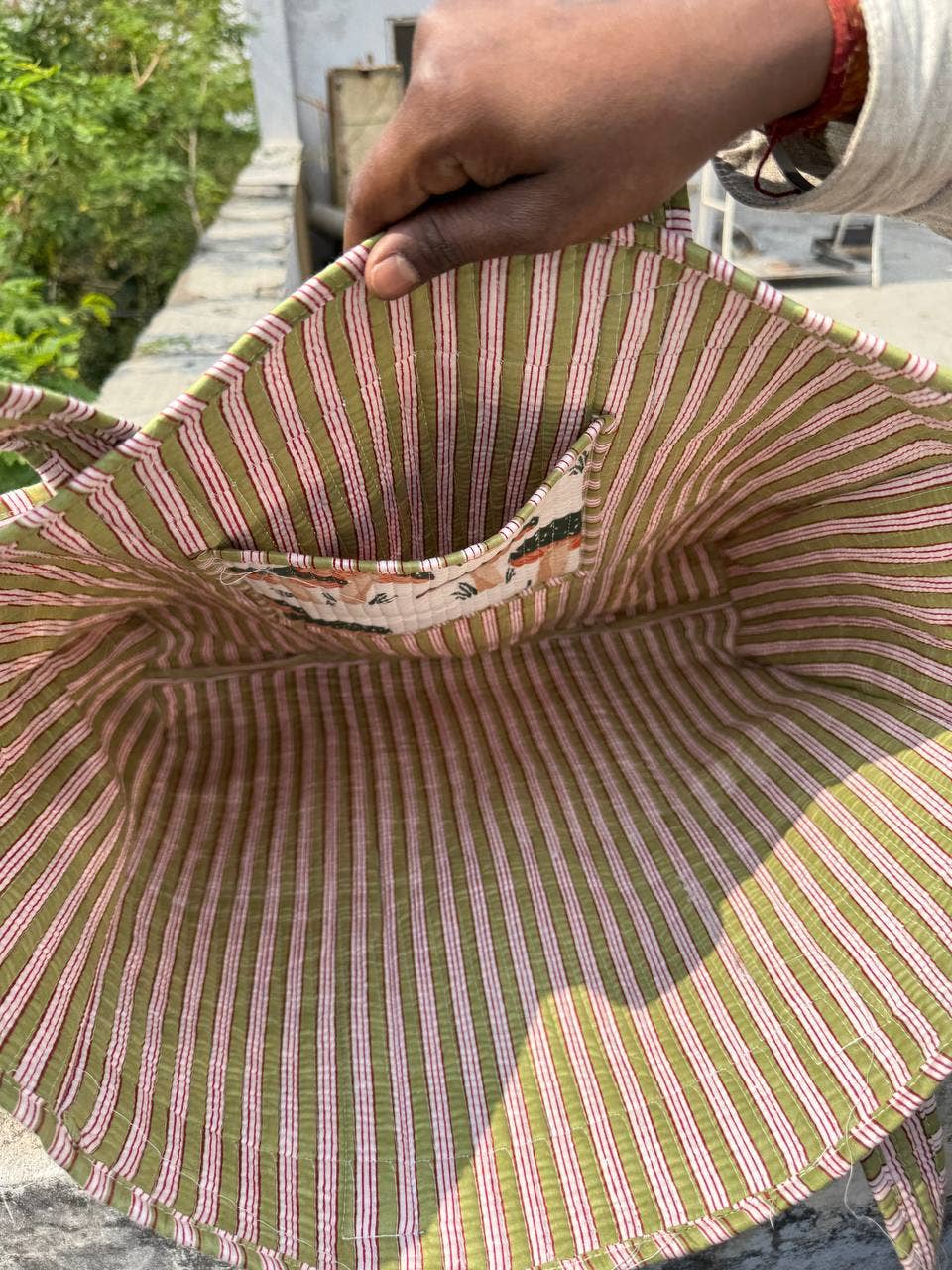 Cotton quilted travel bag made by Indian Artisans, This cotton quilted shopping bag is totally unique and multi purpose. Use this for your grocery or as a travel bag. Perfect to suit everyone.