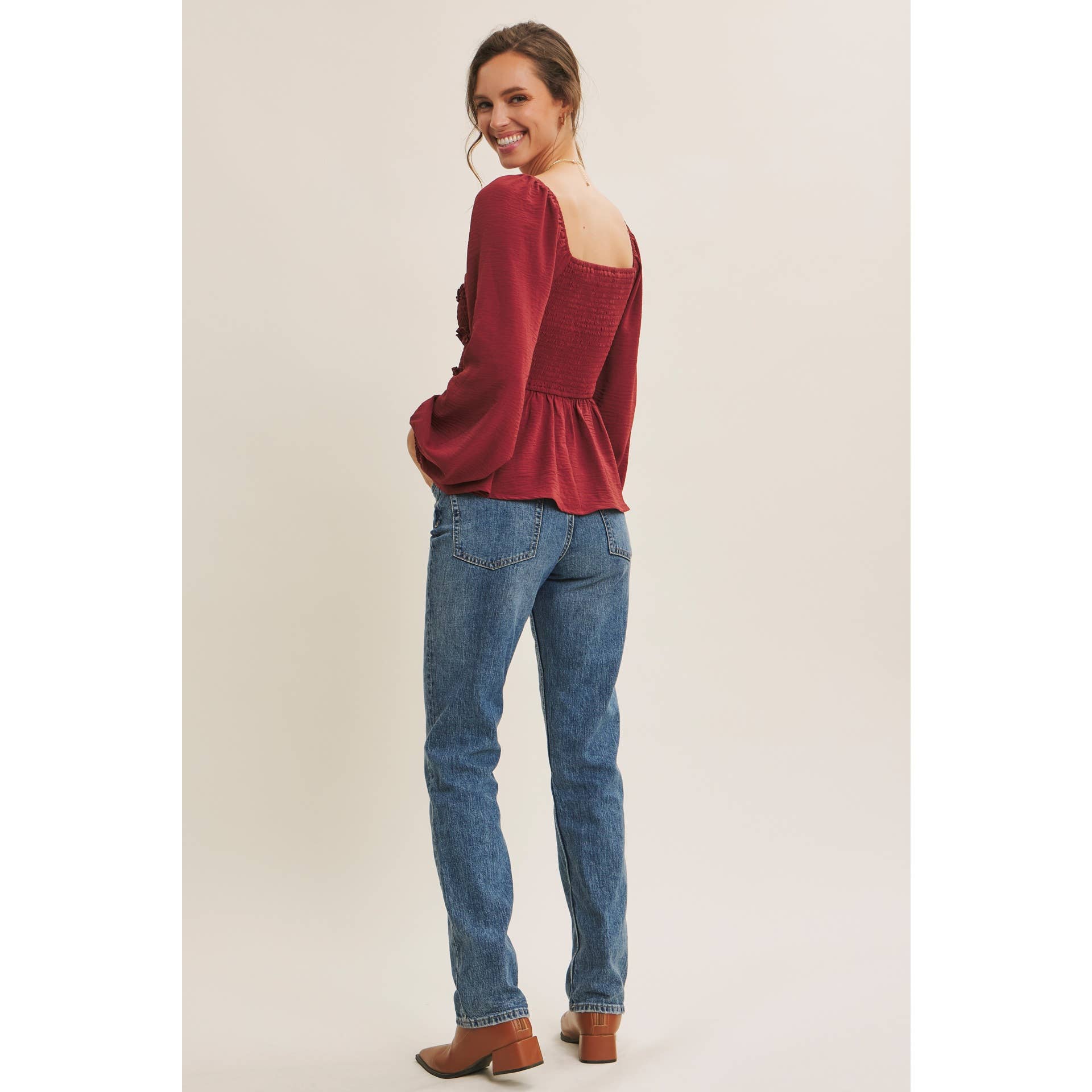 - Long balloon sleeves