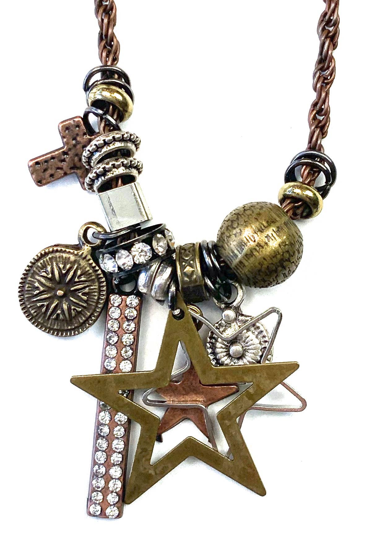 Introducing the NK-Mixed Star Cluster XNB087, a unique piece from Lost & Found Trading. This pendant/charm necklace features a distinctive mixed star cross cluster design, a testament to our commitment to unique creations. Founded by Gary Fields, a veteran of the fashion accessory and home decor business, Lost & Found Trading is a testament to small-scale, boutique craftsmanship, offering one-of-a-kind designs at affordable prices. Wear this necklace to express your individuality and find yourself in what you love.